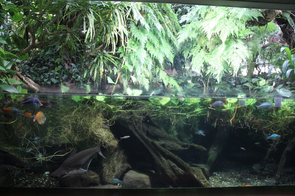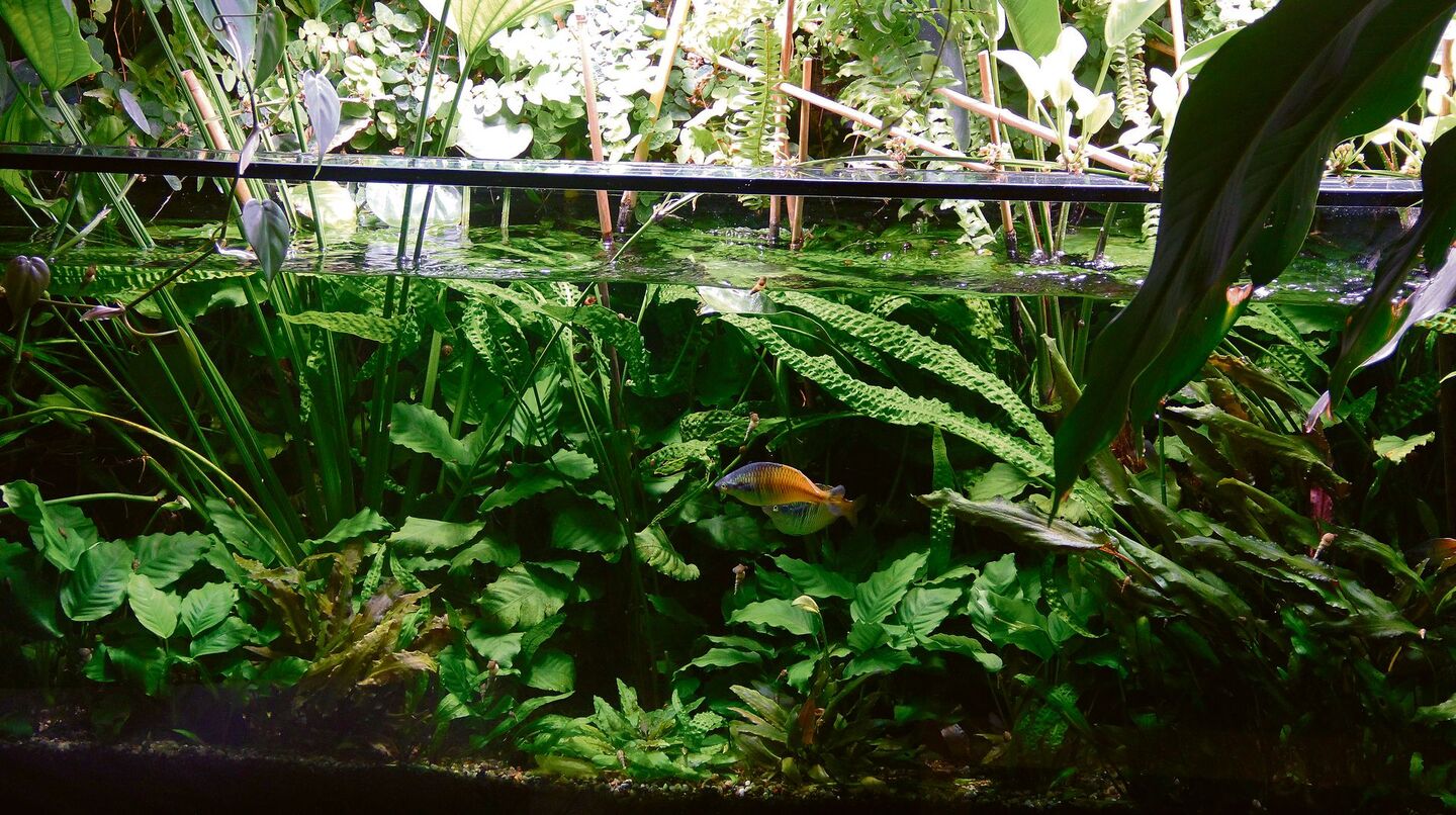 Ein Flussausschnitt der Tropen fasziniert. Wurzeln und Baumstämme ragen aus dem Wasser, Lianen und Zweige bilden ein undurchdringliches Dickicht. Was sich unter Wasser tut, bleibt aber verborgen. Nicht so in einem Paludarium – einer Mischung zwischen Aquarium und Terrarium.
