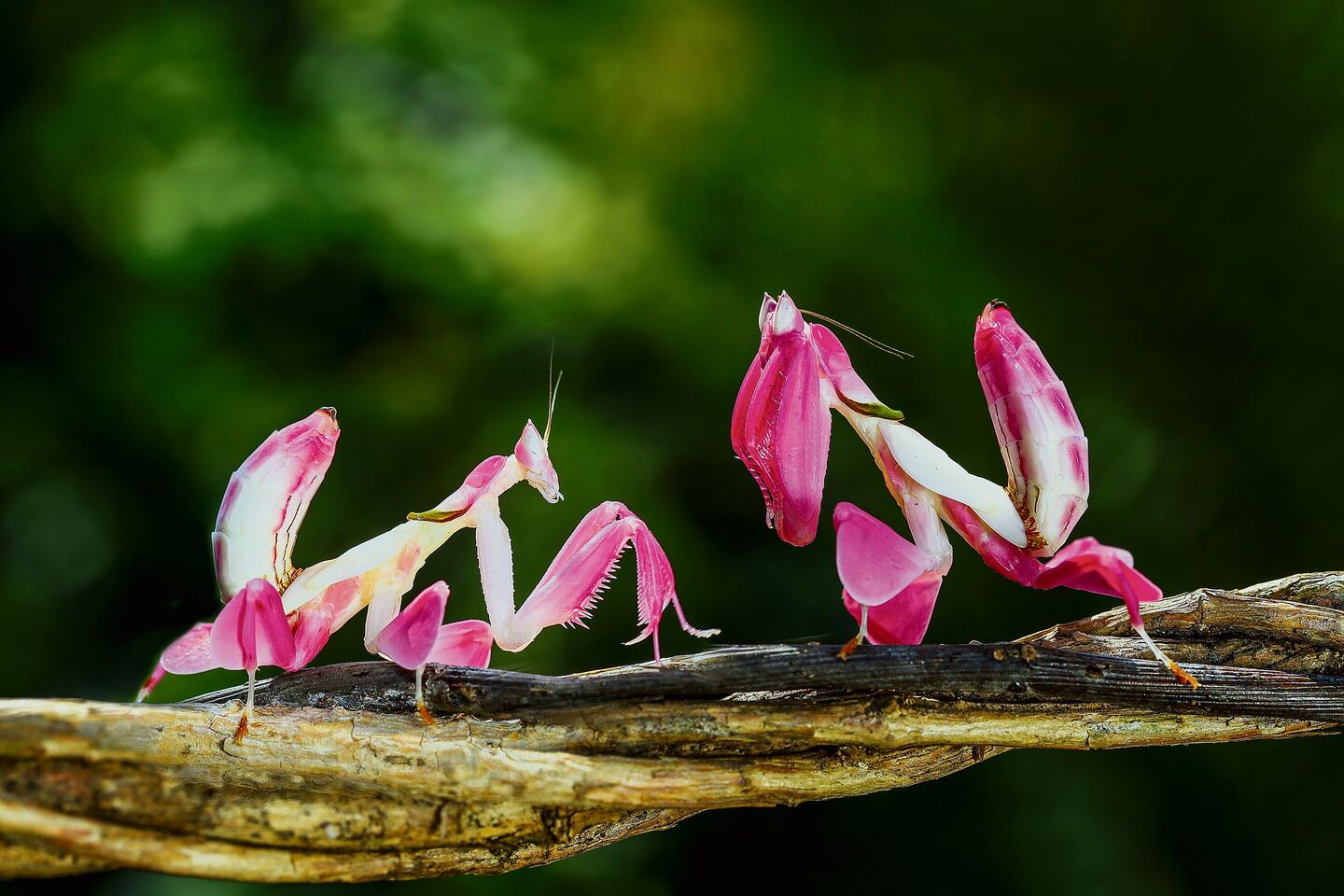 Ein bisschen wie Ameisen muten die kleinen Nymphen an, aus denen mal stattliche Gottesanbeterinnen werden sollen. Mit jeder Häutung werden die Tiere grösser und entwickeln sich schliesslich zu den beeindruckenden, bizarren Fangschrecken. Ihr erstes Beinpaar ist zu Fangbeinen umgewandelt, die sie in einer lauernden Position so aussehen lassen, als würden sie beten. Die weltweit verbreiteten zahlreichen Arten der Mantiden sind nicht nur ein echter Hingucker, sondern auch interessante Tiere zum Beobachten im heimischen Terrarium.