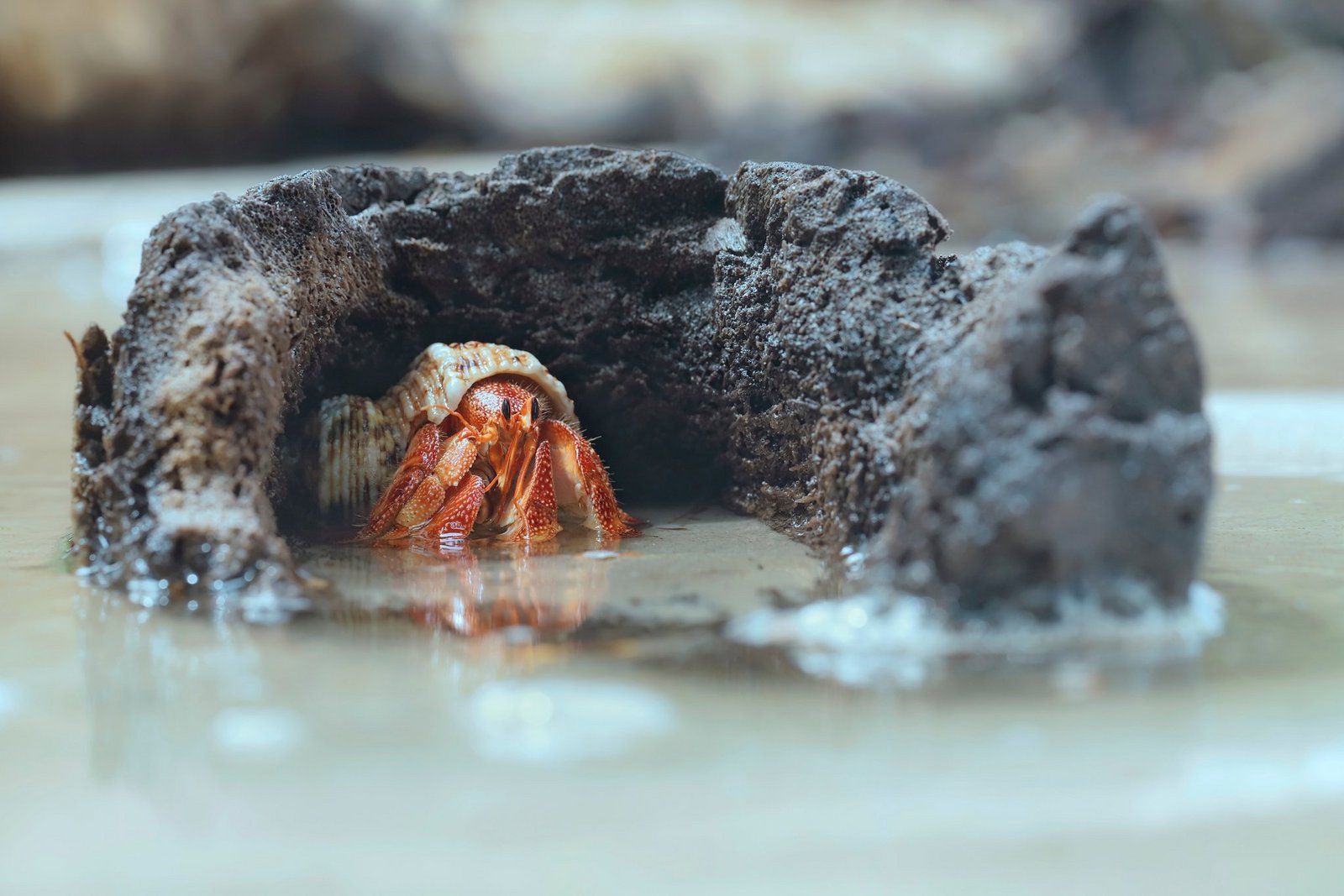 Nicht alle Krebse sind auf das Meer angewiesen. Landeinsiedlerkrebse haben sichan das Leben in Schneckenhäusern an Land angepasst und können bei genügend Luftfeuchtigkeit auch zu Hause im Terrarium gehalten werden.