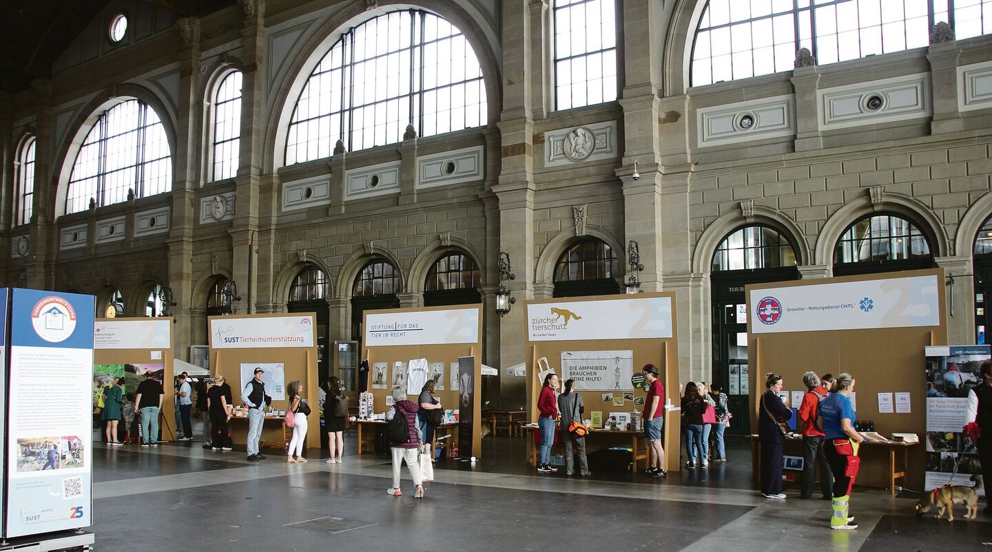 Ob Katze, Igel, Papagei oder Fisch: in der Schweiz kümmern sich viele Organisationen um Tierschutz. Anfang September 2025 stellten sich einige an einer Standaktion in der Halle des Zürcher Hauptbahnhofs vor.
