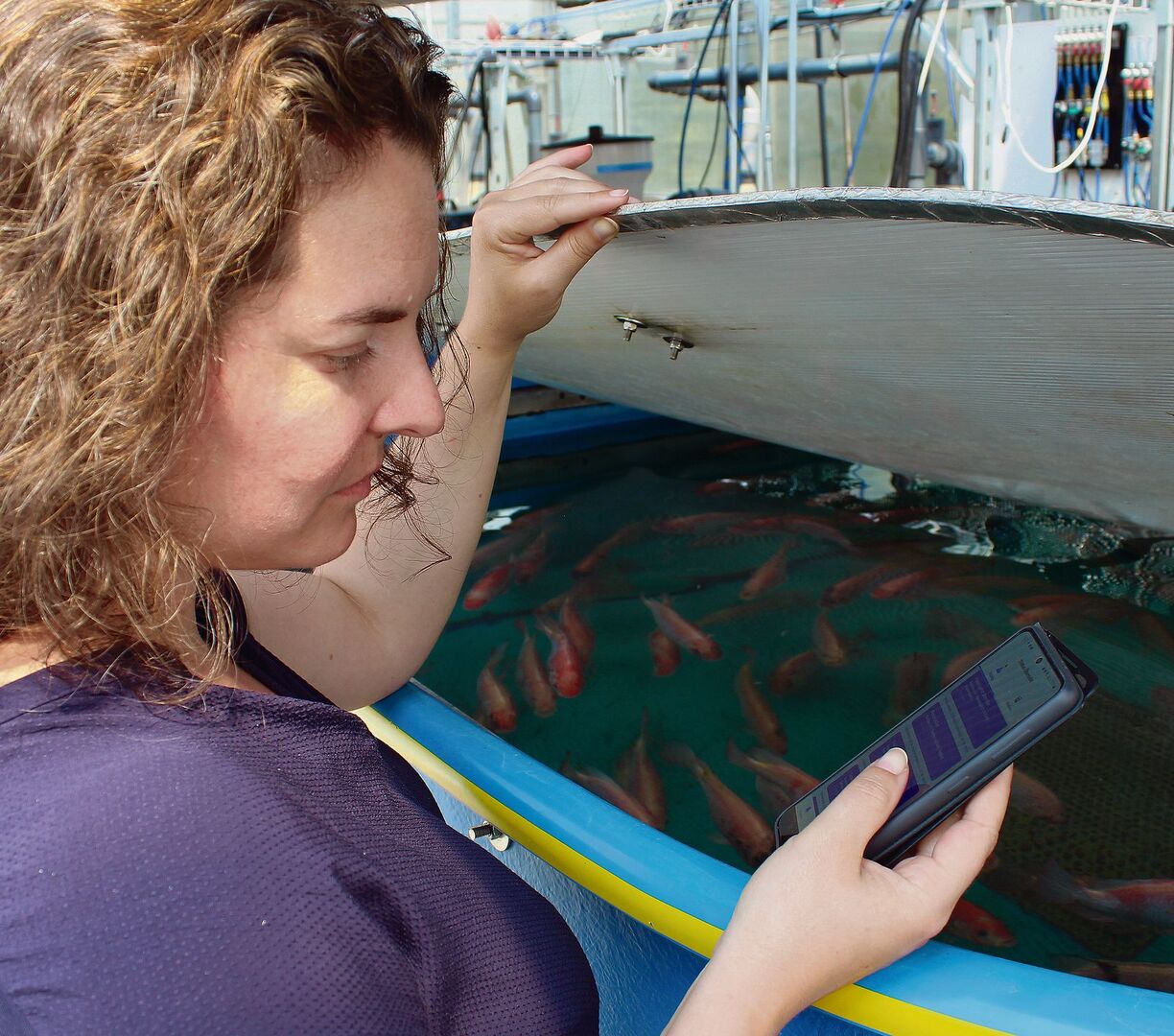 Linda Tschirren kennt ihre Tiere gut. «Auch einem Fisch sieht man durchaus an, ob er zum Beispiel krank oder zufrieden ist. Viele Fischzüchter merken intuitiv, ob es ihren Tieren gut geht oder etwas im Argen liegt.» Für Züchter sei es aber manchmal gar nicht so einfach, dies in Worte zu fassen und auch anderen zu vermitteln, zum Beispiel, wenn eine Kontrolle durch das Veterinäramt ansteht oder der Konsument Fragen hat. Die Biologin hat daher ihre Doktorarbeit dem Thema gewidmet und verschiedene Verhaltensweisen von Fischen untersucht. Daraus ist eine App entstanden. «Darin können Fischzüchter nicht nur Parameter wie Wassertemperatur, Futter und Besatzdichte eingeben, sondern auch alles, was sie bei ihren Fischen beobachten. Die App rechnet dann quasi aus, wie gut es den Tieren geht.» Das hilft dabei, früher zu erkennen, wenn etwas nicht stimmt. Fische können schliesslich schlecht auf sich aufmerksam machen. Darunter würden dann nicht nur die Tiere leiden, sondern auch die Halter. «Stress wirkt sich oft direkt auf die Gesundheit aus.