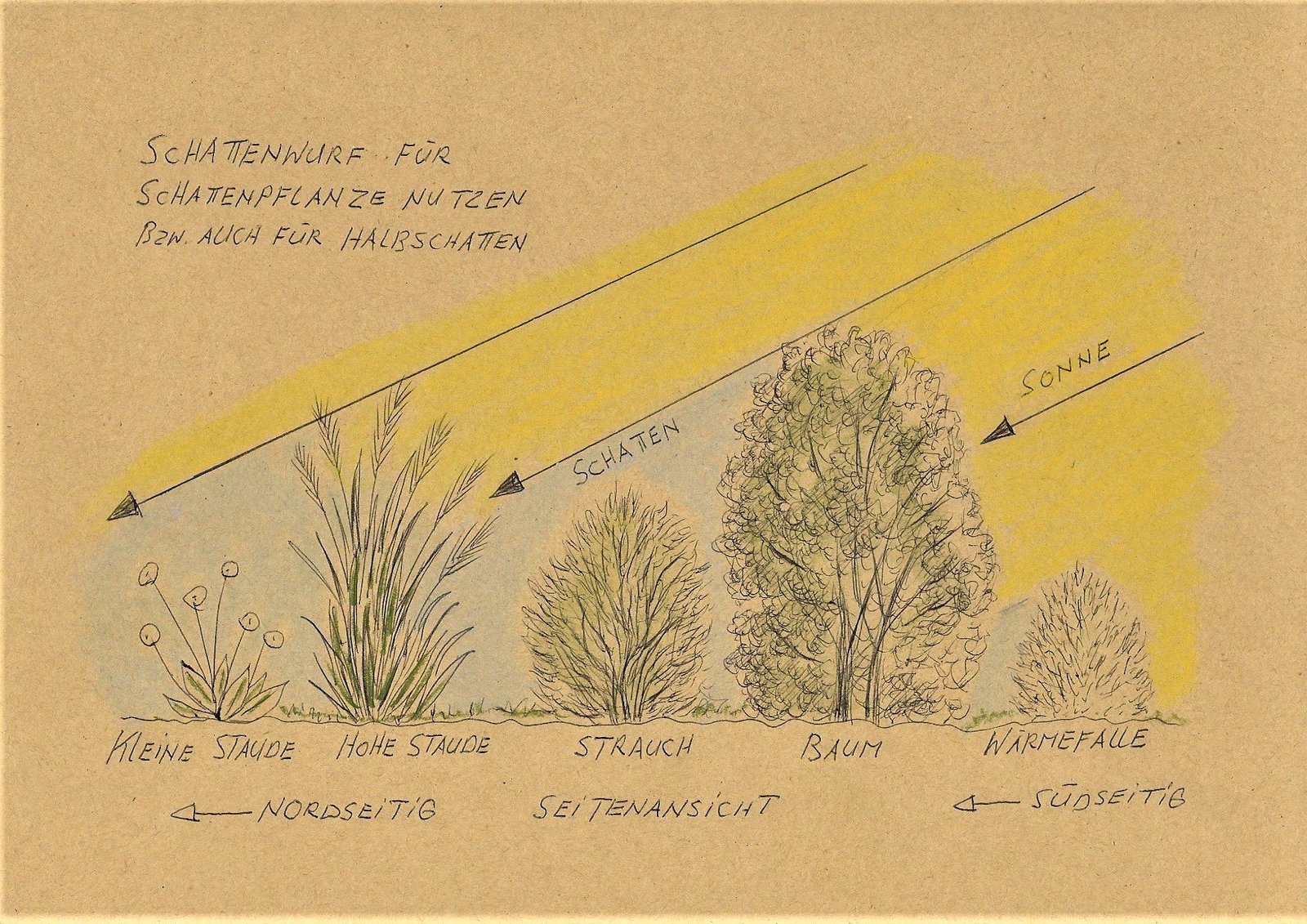 Damit sich der Aufwand in Grenzen hält, sollten Pflanzen standortgerecht gesetzt werden. Bevor wir unseren Garten bebauten, haben wir ein Jahr lang das Klima beobachtet, und zwar vor Ort, aber auch das Mikro-klima im Garten, das durch Hecken, Mauern und Bäume beeinflusst werden kann. Grundsätzlich braucht man nicht nur Logik, sondern auch viel Gefühl für einen Garten. Zudem: Es gibt nichts Kostspieligeres, als gegen die Natur zu arbeiten.