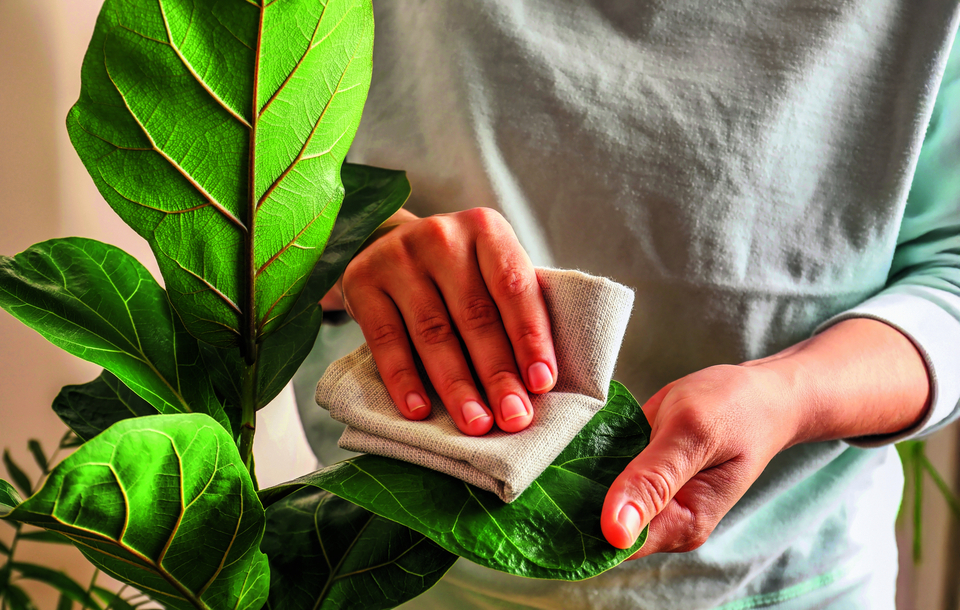 Zimmerpflanzen sind nicht nur dekorativ, sie erfüllen in der Wohnung auch luftreinigende Funktionen. Durch die Blätter nehmen sie Kohlendioxid auf und wandeln es in Sauerstoff um. In der Natur werden sie regelmässig durch Regengüsse gereinigt. Im Zimmer sammelt sich Staub auf dem Grün an. Mit von Staub besetzten Blättern kann aber eine Pflanze nicht mehr richtig assimilieren. Deshalb ist Blattpflege wichtig.