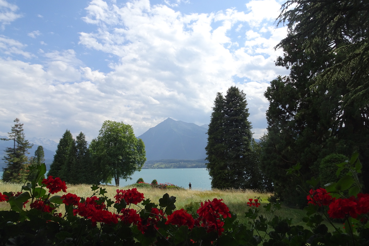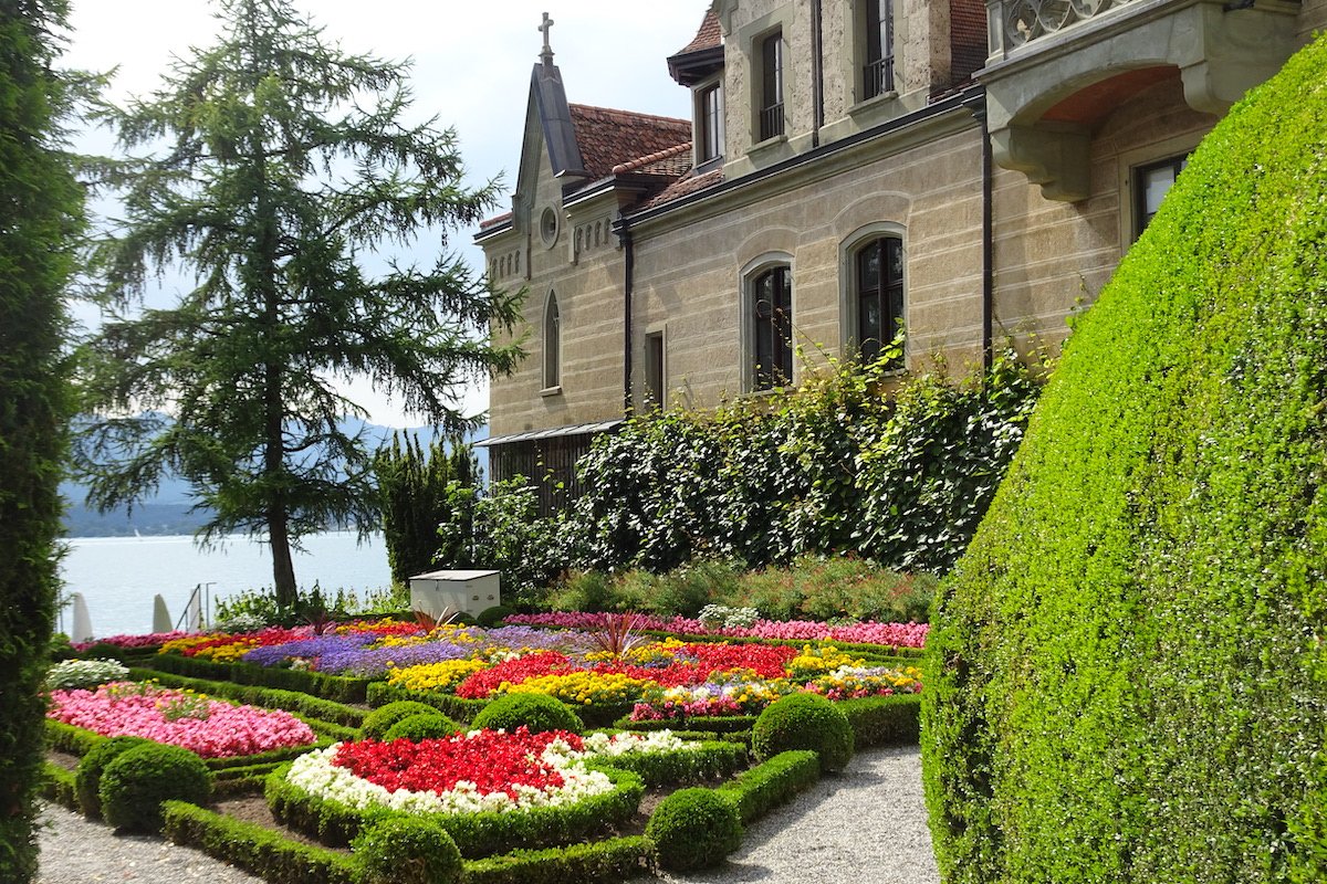 Ein Schloss mit Park am See, Bäumen, die hunderte von Jahren alt sind, weiten Wiesenflächen und Blumenbeeten. Eine Entdeckung auf einer Gartenreise durch England? Mitnichten! Es liegt mitten in der Schweiz am Thunersee in Oberhofen im Kanton Bern.