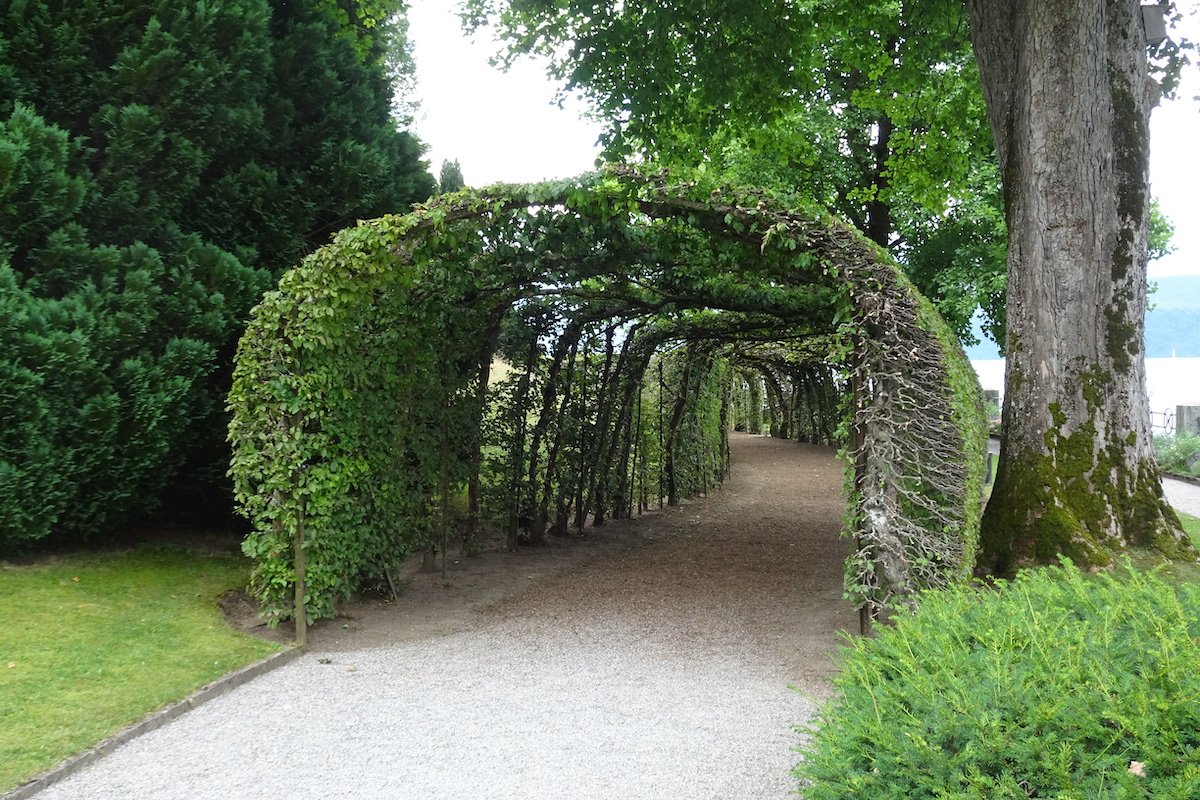 Vielleicht brennt die Sonne ans Ufer, das Seewasser glitzert, so dass die Augen ermüden. Welch eine Wohltat, in den einmaligen Buchenlaubtunnel zu entschlüpfen. Über viele Meter unter dem Hainbuchenlaub wandeln und vom angenehmen Klima profitieren, zeigt ganz plastisch, wie wirkungsvoll Laub ist. Die Blätter transpirieren und sorgen für ein feucht-kühles Klima.
