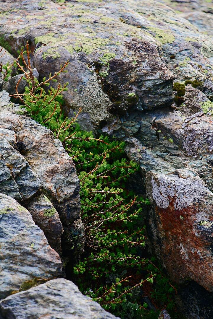 Die blau schillernden Gletscher und die mächtige Alpenkulisse mit dem charakteristischen Matterhorn kontrastieren mit den kleinen, unscheinbaren Pflanzen. Doch wenn Adrian Möhl von ihnen erzählt, werden sie zu Persönlichkeiten. Er rät: «Für diesen Garten ist Zeit wichtig, damit Entdeckungen gelingen. Vieles hier in dieser stillen Welt drängt sich nicht auf.» So wie die Lärche. Adrian Möhl steht im unteren Teil des abschüssig gelegenen Alpingartens und sagt: «Ein Baum auf 2800 Meter Höhe ist etwas Enormes. Bestimmt handelt es sich um eine der höchstgelegenen Lärchen im Alpenbogen.» Im Mikroklima einer Felsspalte entfaltet sich vor ihm das zarte Hellgrün. «Die Vegetationszeit der Pflanzen hier ist sehr kurz, bereits im August kann wieder Schnee fallen.»