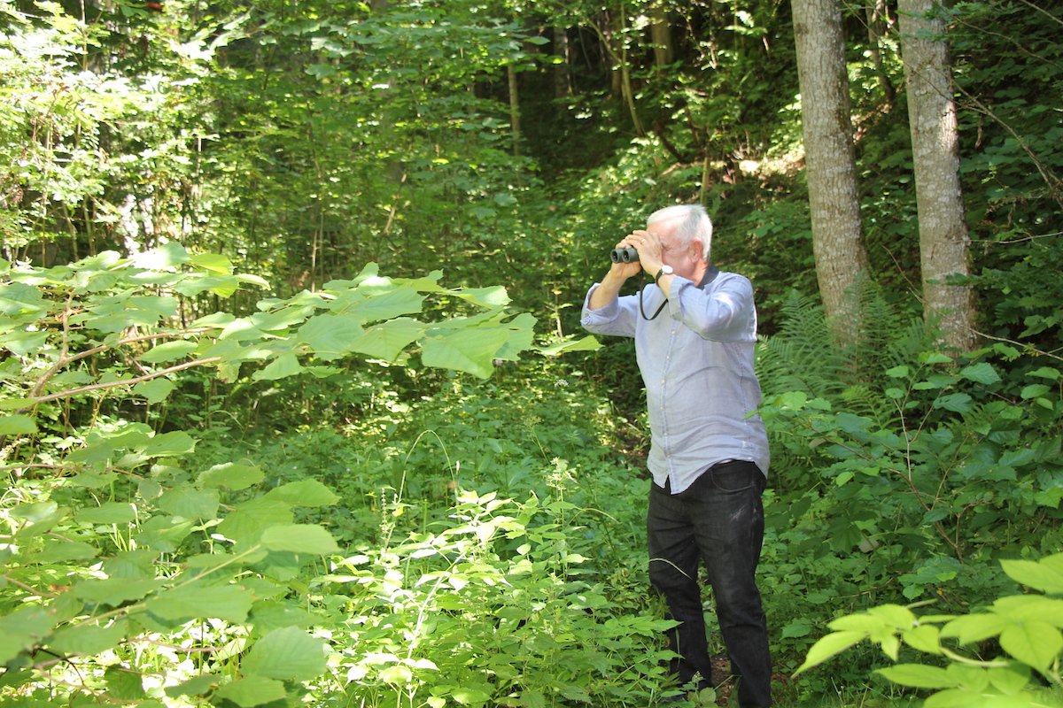 Seit er 67-jährig sei, kümmere er sich ausschliesslich um die Natur, sagt der Vielseitige, schlüpft zwischen Eschenästen hindurch, geht einige Steinstufen hinunter und steht vor einem Weidenhaus. «Für meine drei Grosskinder», sagt Latour vor dem grünen Rund aus belaubten Weidenästen. Rund herum wuchert üppiger Wald. «Ich habe Tannen fällen lassen, damit Licht einfällt und sich ein gemischter Wald bildet. Hier finden mehr Arten Lebensraum», erzählt der Naturfreund – jetzt unterwegs auf einem schmalen Pfad. Er weist auf einen Nistkasten für Waldkäuze hin, zeigt eine Spechthöhle in einem morschen Stamm. Der Wald gehöre noch zu seinem Grundstück.