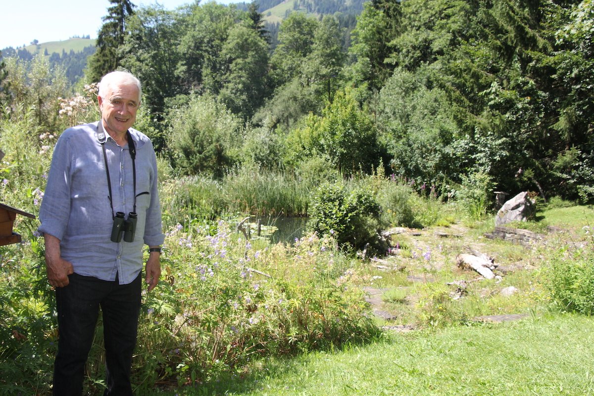 Als er wieder die Steinstufen hochsteigt, späht er in ein komplett anderes Biotop. Latours Garten, den er vor zehn Jahren nach seinen Vorstellungen von einem Gartenbauer gestalten liess, weist unterschiedliche Räume auf. «Es ist wie eine Theaterkulisse», schwärmt der Naturliebhaber und späht auf einen Zitronenfalter, der von einer Blüte des Blutweiderichs zur anderen gaukelt. In der Ferne ragen die Berge Hohgant und das Trogenhorn auf.