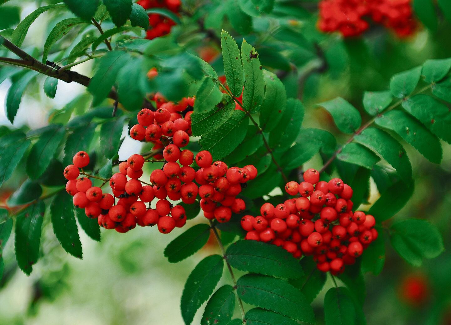 Der Götterbaum mit den fächerartigen Blättern stammt aus China. Warum aber nicht einen Vogelbeerbaum anpflanzen anstatt des invasiven Gewächses, das oft in Stadtnähegedeiht? Die Blätter wachsen ebenfalls gefächert an einer Rippe, die Blüten sind weiss und die orange-roten Beeren ab Herbst wirken nicht nur dekorativ, sondern sind auch beliebtes Vogelfutter, das Kraft für den Winter oder Zug schenkt.