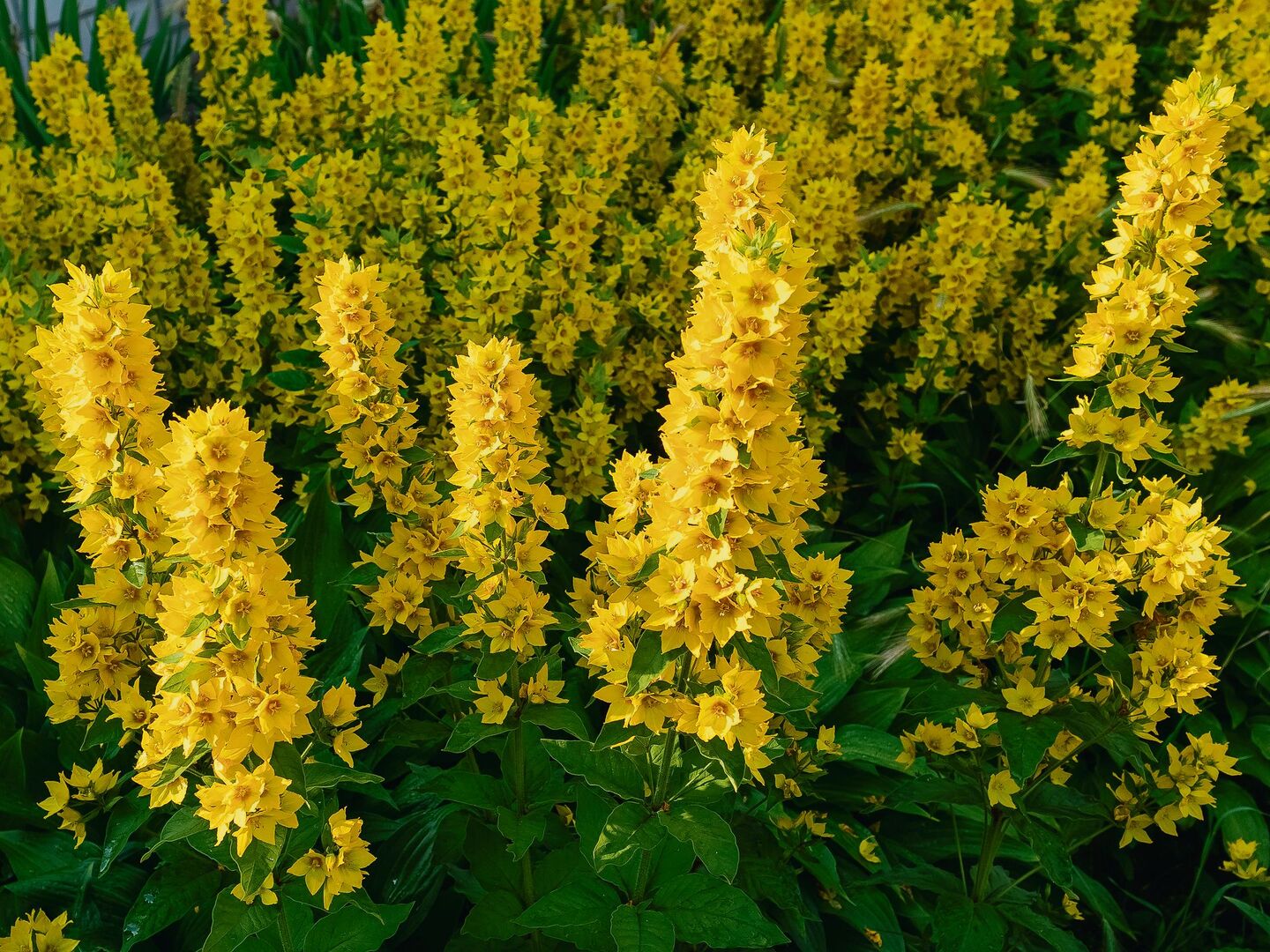 Die Kanadische Goldrute verdrängt auf Waldlichtungen einheimische Pflanzen. In der Schweiz gibt es eine einheimische Art, die Echte Goldrute (Solidago virgaurea), die ebenso schön blüht. Auch derGemeine Gilbweiderich (Bild) blüht zwischen Juni und August genauso attraktiv. Die mehrjährige Staude wächst bis 130 Zentimeter hoch. Zwei Wildbienenarten sind auf das besondere Blütenöl aus. DieKönigskerze, auch Wollblume genannt, blüht im zweiten Jahr ebenfalls gelb und wird drei Meter hoch. Auch das Echte Johanniskraut blüht gelb und wird einen Meter hoch. Ein einheimischer Gelb-Reigen!