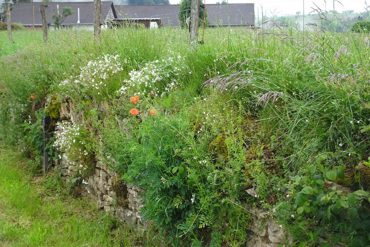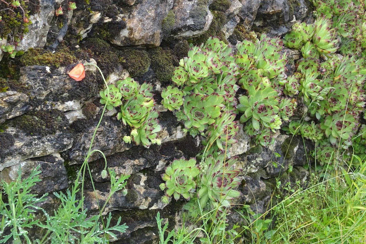 Es gibt Pflanzenarten, die mit sehr kargen Bedingungen zurechtkommen. In der Natur wachsen sie an Steinhängen. Eine Mauerritze ist ein ähnlicher Lebensraum. Trockenmauern bieten viele solcher Nischen und sind auch für Tiere wertvoll.