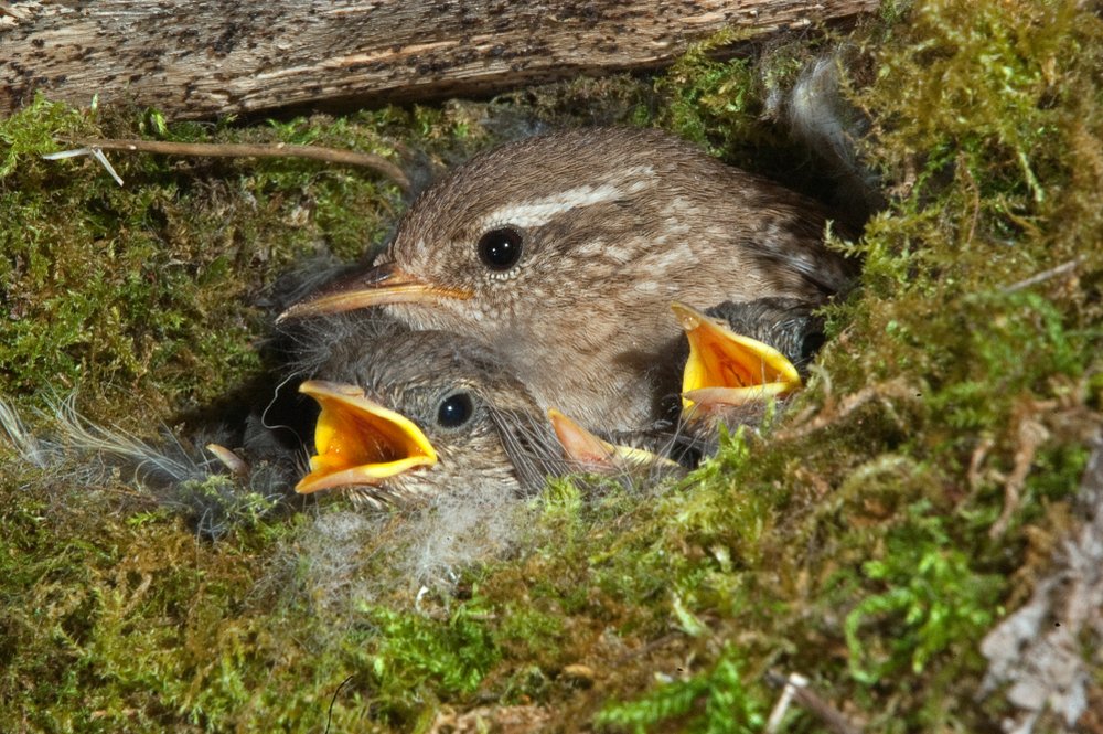 Der Zaunkönig versteckt sein kleines, hauptsächlich aus Moos und Flechten sorgfältig gewobenes Napfnest mit Vorliebe in Asthaufen. Ganz gegensätzlich sind Taubennester. Sie bestehen aus wenigen, wie achtlos hingelegten Zweigen. Ob von Stadt-, Türken- oder Ringeltaube gebaut, die Nester sehen ähnlich aus. Die Hohltaube, ebenfalls eine Schweizer Art, schert aus, denn sie erstellt kein freistehendes Nest, sondern baut ein weitaus sorgfältiger konstruiertes Nest aus Blättern, Halmen und Moos in Baumhöhlen.