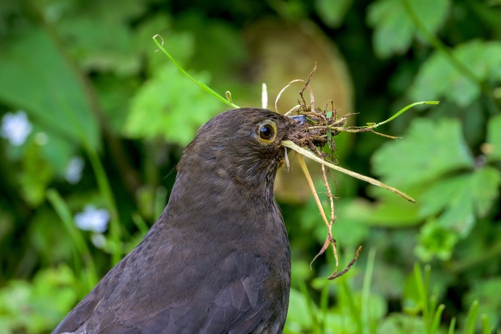 Alle Vögel brauchen einen sicheren Ort, um ihre Eier zu bebrüten und ihre Jungen aufzuziehen. Viele bauen dazu ein Nest. Meist wählen sie eine geschützte Stelle, beispielsweise in einem Busch oder einer Baum- oder Felsenhöhle. Die Amsel ist ein häufiger Gartenvogel und kann darum regelmässig beim Nestbau beobachtet werden. Nur das Weibchen baut das Nest und fliegt mit Zweigen und Gräsern in einen Busch, oft sogar auch auf einen Balkon. Innerhalb weniger Tage ist das Nest fertig. Damit es stabil bleibt wird auch feuchte Erde und Lehm verwendet. Manchmal werden Teile von Plastiksäcken in das Nest eingewoben, einfach alles, was die Amsel als passend erachtet.