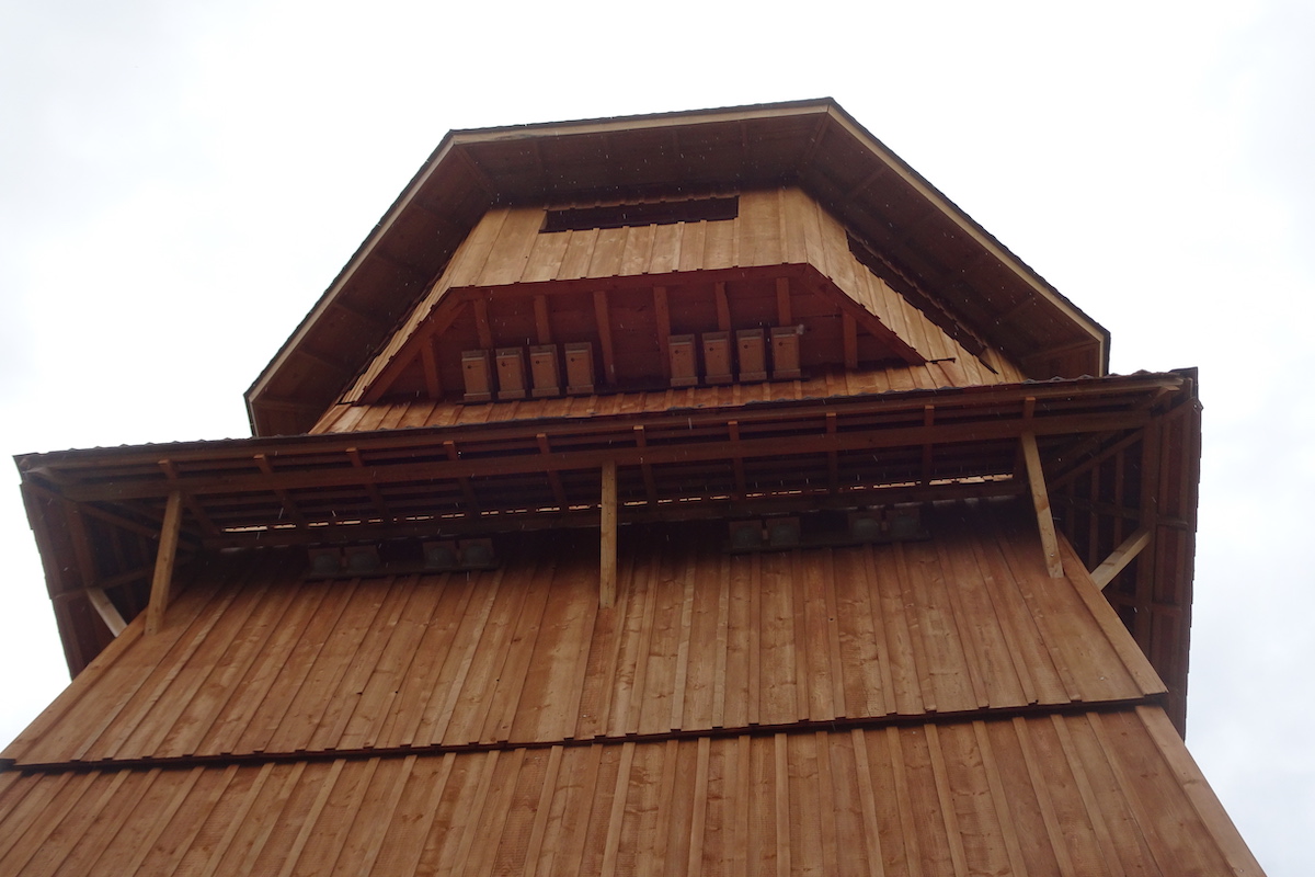 Der komplett aus einheimischem Holz gebaute Turm bietet aber nicht nur eine fesselnde Aussicht, sondern er beherbergt auch verschiedene Ausstellungen, etwa zur Geschichte des Grossen Mooses und zu den Tier- und Pflanzenarten in dieser Landschaft. Am Turm selber sind Nisthilfen für Mauersegler, Schwalbenarten, Meisen, Hausrotschwänze, Schleiereulen und Turmfalken angebracht. Ob die Plattform auf der Spitze des Turms eines Tages gar Störche anziehen wird? Auch Feldermäuse finden in speziell für sie gebauten Unterschlüpfen Schutz.