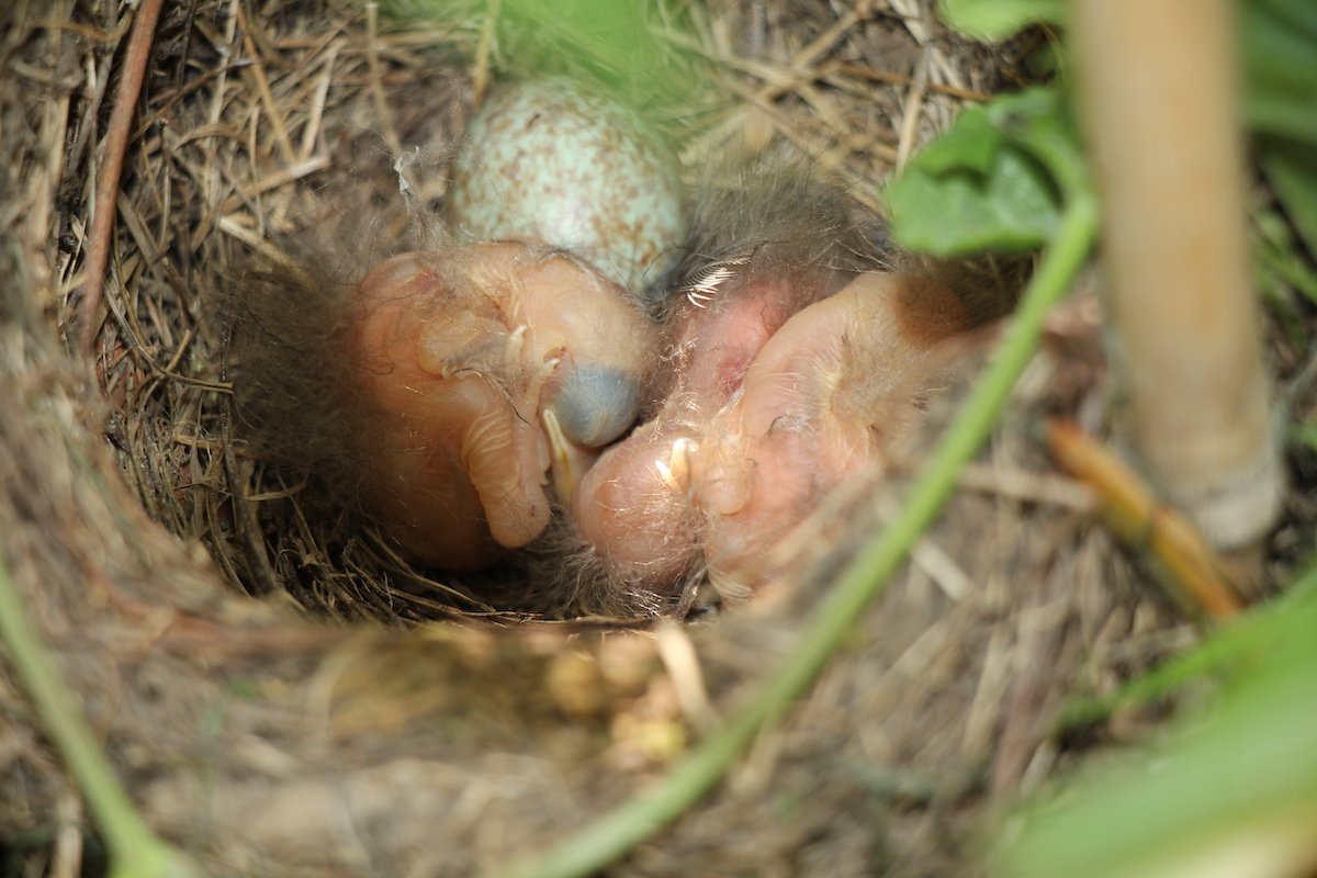 Meist beginnen Amseln früh im Jahr, nämlich im März, mit dem Nestbau. Doch Nester können noch bis in den Juni konstruiert werden. Ein Amselnest ist ein Kunstwerk, bestehend aus Zweigen, Pflanzenmaterial und feuchter Erde und Lehm. Zuerst wird mit Schlick eine Mulde oder Halterung konstruiert, dann werden Zweige und Würzelchen verbaut. Als Baumeisterin amtet das Weibchen, das Männchen singt und verteidigt das Revier. Das Terrain muss ja bald viele Regenwürmer hergeben, um den Nachwuchs zu füttern. Da darf es nicht sein, dass Eindringlinge die Nahrung streitig machen.