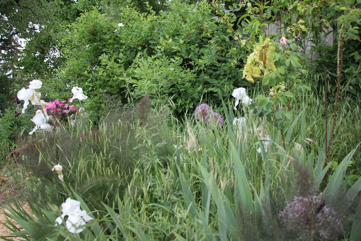 Im Gegensatz zu den Trockenorten bereichern die Schattenseite des Gartens Farne, Stinkender Nieswurz und die Nesselblättrige Glockenblume. Als Grundlebensraum eines Gartens bezeichnet der Pflanzenspezialist eine sonnig-humose Rabatte, die im Englischen unter dem Begriff Mixed Border bekannt ist. Wasserdost, Sigmarswurz in Kombination mit Glockenblumen und Fingerhut wachsen dort gut.