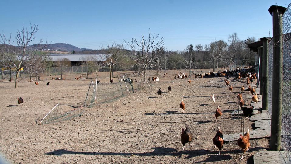 Auch die Bestimmung, dass im Grünauslauf ein Teil des Grases kurzgehalten werden muss, hat seine Gründe. Kurzes Gras können die Hühner viel besser aufnehmen als langes. Bei der Aufnahme von zu viel langem Gras besteht zudem die Gefahr, dass es zu einer Kropfverstopfung kommt, die nur vom Kenner gut und richtig gelöst werden kann. Oft gehen die Hühner daran ein. Im hohen Gras gibt es jedoch viel mehr Kleingetier aller Art – gefundene Fressen für die Hühner.