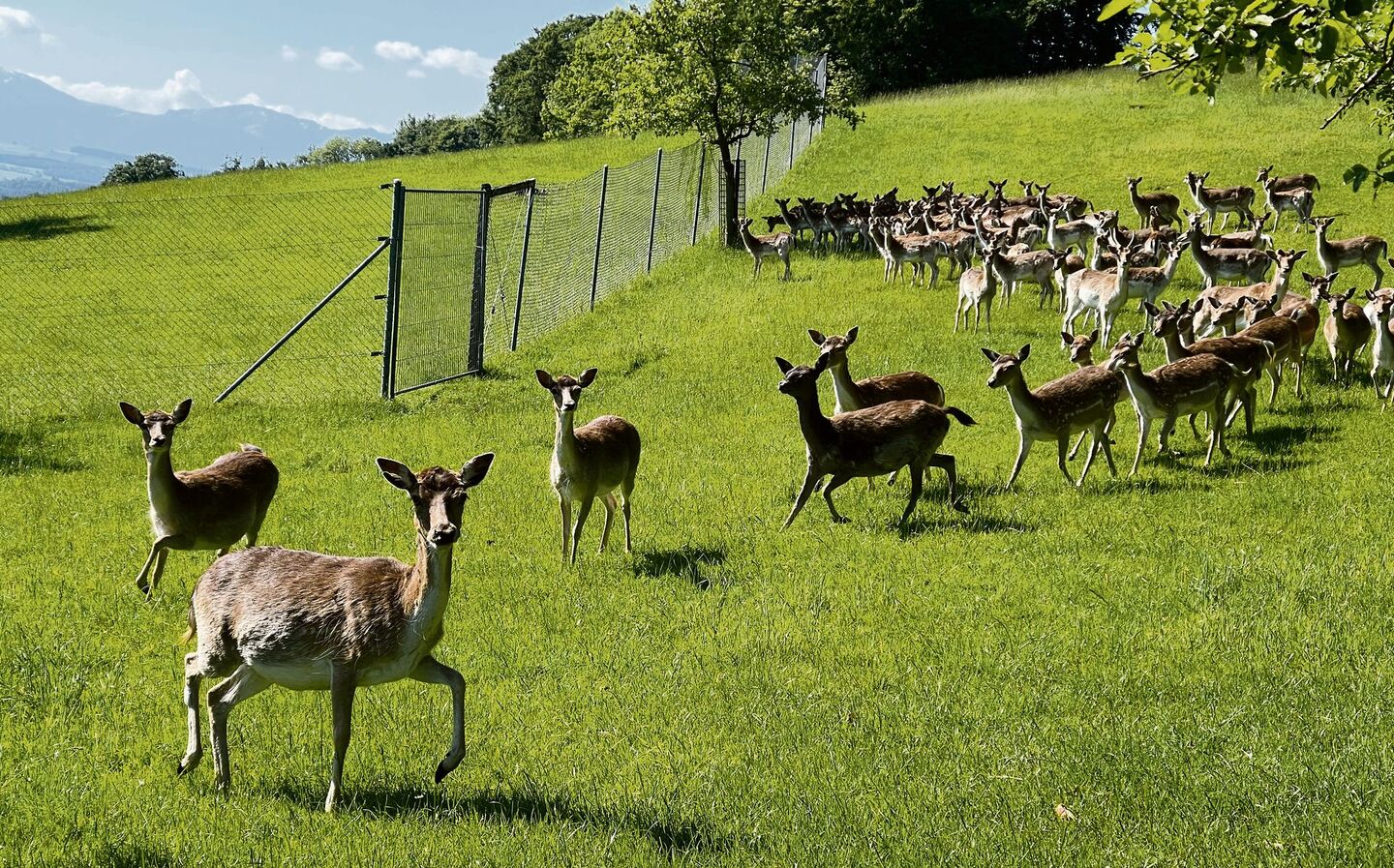 Damhirsche stammen ursprünglich aus Vorderasien, wurden aber bereits während des Römischen Reiches in viele Regionen Europas eingeführt. Ab dem 16. Jahrhundert haben sie zudem viele Fürste und Grossgrundbesitzer als Gattertiere importiert, um sie jagen zu können. Ihr Fleisch ist es auch, welches Damhirsche hierzulande beliebt macht. Denn im Herbst überkommt Herr und Frau Schweizer die Lust auf Wild. Knapp3900 Tonnen Wildfleisch gingen 2024 in der Schweiz über die Theken und auf die Teller – rund 400 Gramm pro Einwohner. Der Wildfleischkonsum ist seit Jahren rückläufig. Was bleibt, ist die Tatsache, dass rund zwei Drittel des Wilds importiert sind. «Die Nachfrage nach Schweizer Wildfleisch steigt», so Markus Gafner. Die Jagd allein kann diesen Bedarf nicht decken, schon gar nicht zu kundenfreundlichen Preisen. So greifen viele Schweizerinnen und Schweizer auf Fleischprodukte von Hirschen zurück, die in Gehegen gehalten werden.