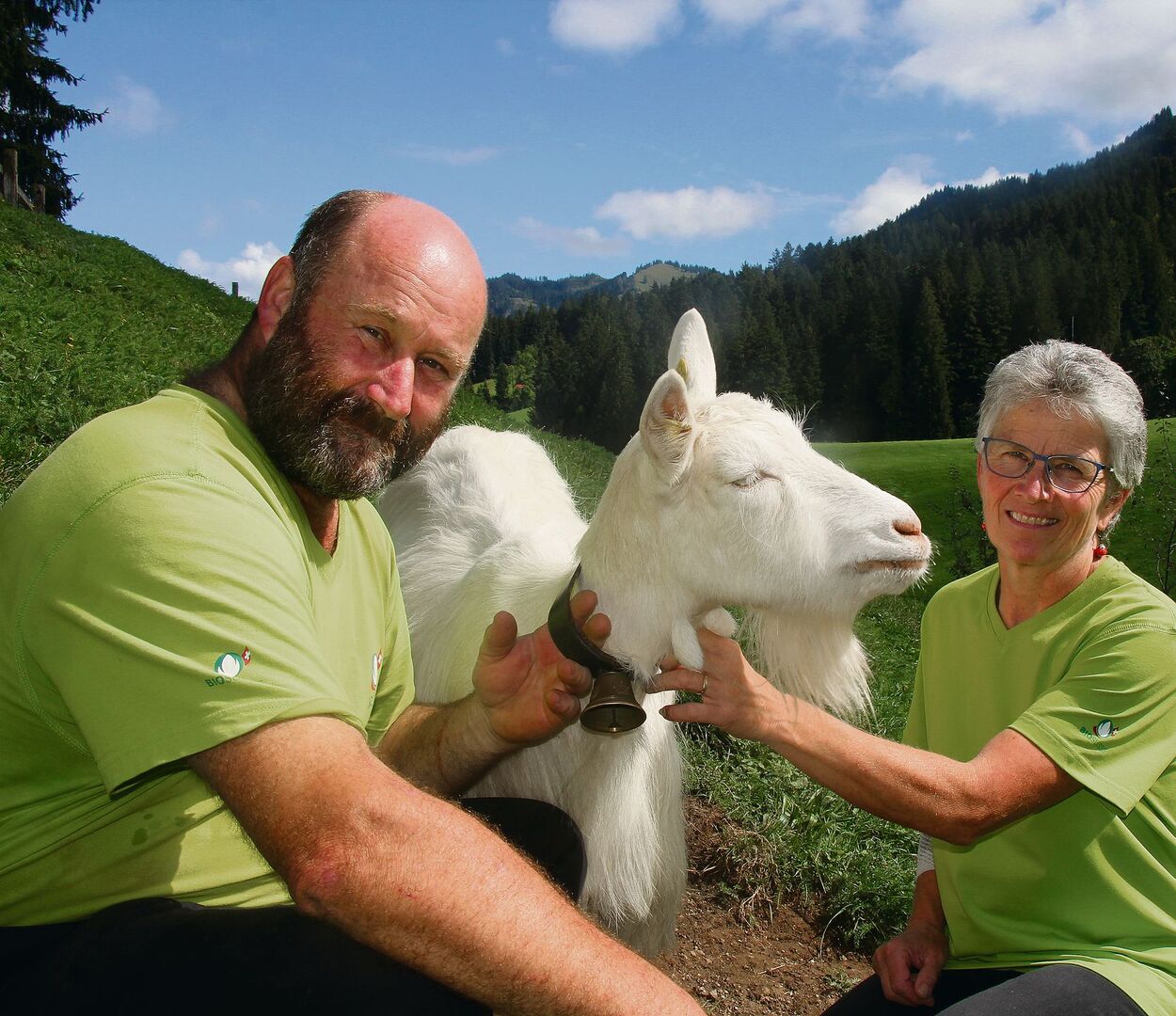 Auf grüner Weide tummeln sich auch die Appenzellerziegen. «Sie sind meine besonderen Lieblinge», sagt Beat Gerber. Er ist eben von seiner Tätigkeit als Wegmeister der Gemeinde zurückgekehrt. Sein erster Gang führt ihn zu Zilla und ihrem Trupp. Die stattliche Ziege kommt sofort angetrippelt und lässt sich vom Arche-Hof-Landwirt streicheln.