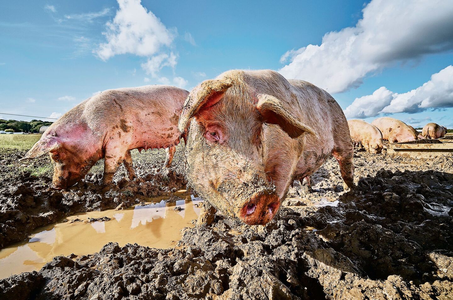 Auf der Ferme en Croix im waadtländischen Vullierens dürfen die Schweine frei wählen, ob sie auf der Weide Gras fressen und sich im Schlamm suhlen oder doch lieber im Unterstand ein Nickerchen machen wollen.