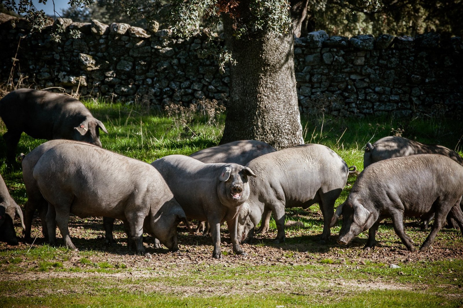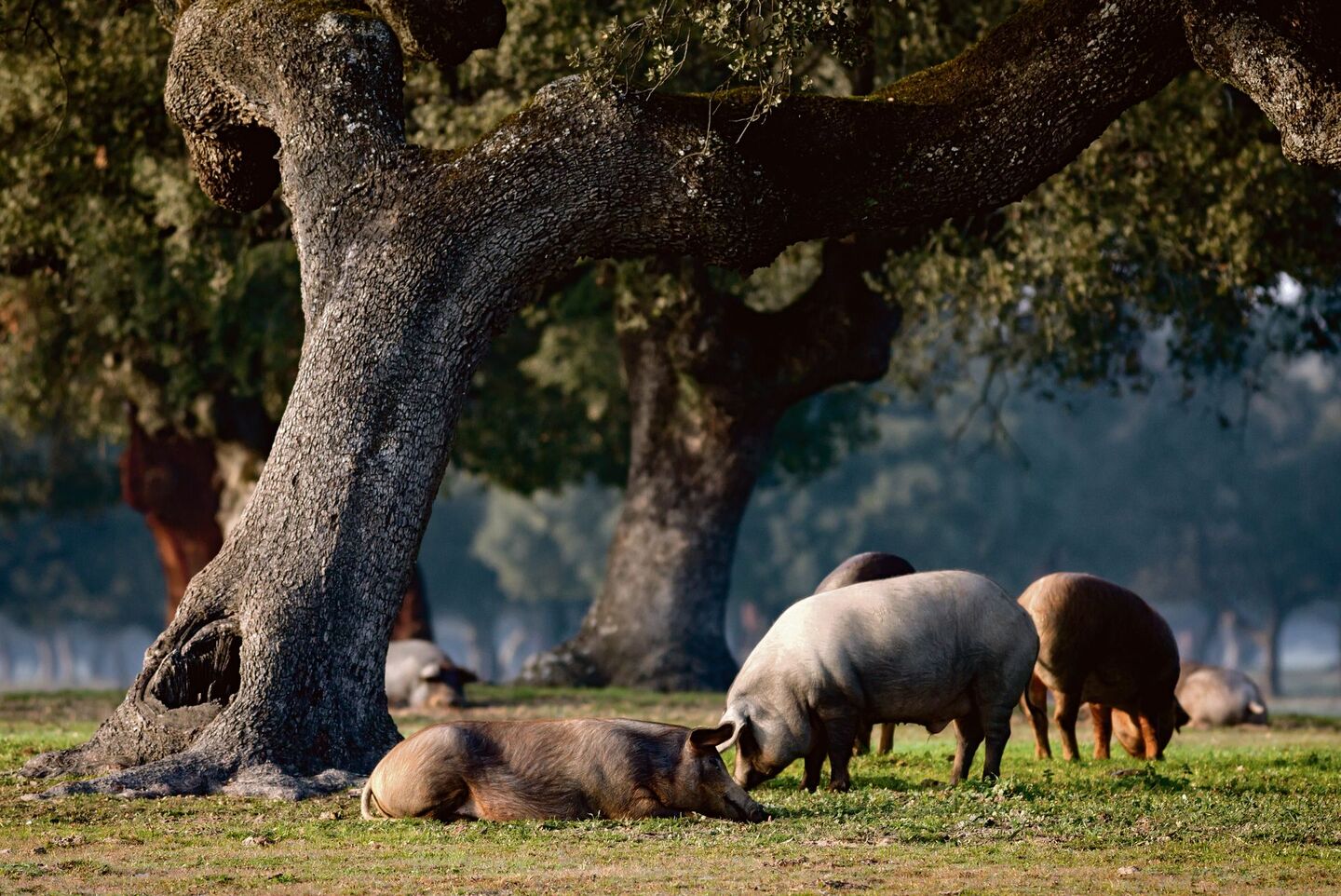 Die Dehesa in den südwestspanischen Regionen Andalusien und Extremadura sowie in den angrenzenden Gebieten Mittel- und Südportugals ist eine einzigartige Landschaft mit lichten Wäldern aus Stein- und Korkeichen. Sie ist bekannt für ihre Biodiversität mit über 40 Pflanzenarten und einer vielfältigen Vogelwelt. Gegen die Verbuschung des Kulturlands unverzichtbar sind Schafe, Ziegen, Rinder und eine der letzten europäischen Weideschweinrasse: das Cerdo Ibérico. Die schwarzen Iberischen Schweine haben Schlappohren und einen Rüssel, der im Vergleich zu jenem der landläufigen rosa Schweine lang ist.
