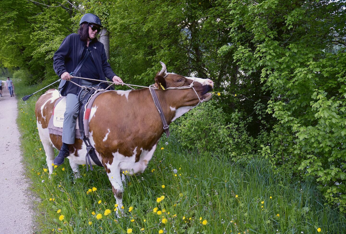 «Als sie zurückkamen, haben sie gejammert, es sei kalt gewesen, sie hätten lange warten müssen und die Runde sei so kurz gewesen», erinnert sich der Vater. «Ich habe geantwortet, was geht ihr auch dort hin. Ihr habt ja einen Stall voller Vieh.» Dies habe ihm keine Ruhe gelassen. Als er um zehn Uhr abends durch den andächtig stillen Stall ging, habe er zu einer Kuh gesagt: «Ich hocke jetzt auf dich rauf.» Gesagt, getan – und die Kuh frass in aller Seelenruhe weiter Gras.