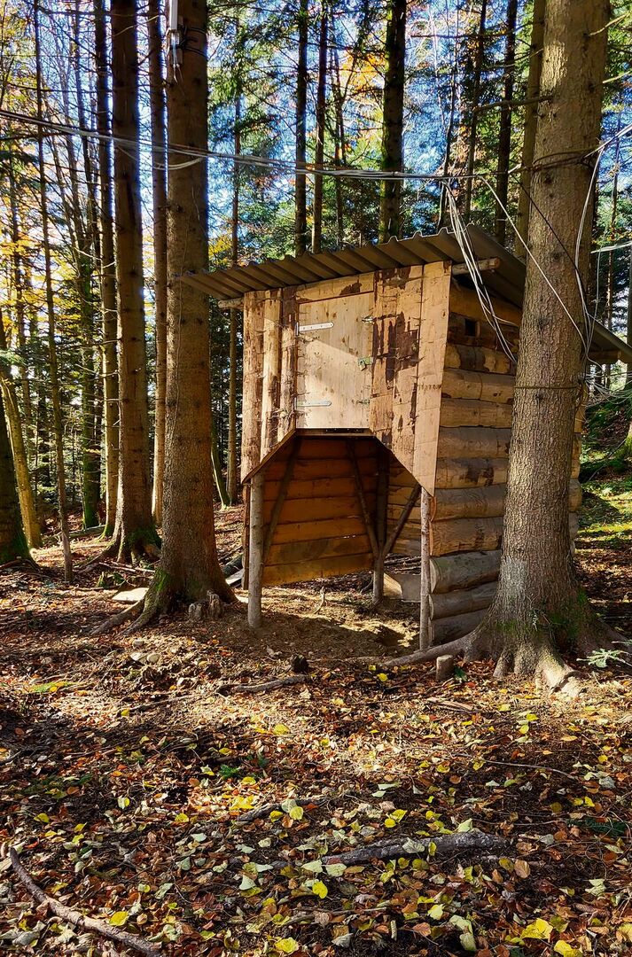 Auf dem Panoramahof in Meggen wagte Ursula Küchler auf Initiative der Albert Koechlin Stiftung und begleitet vom Forschungsinstitut für biologischen Landbau (FiBL) einen Versuch der besonderen Art: Um zu erforschen, wie viel ihrer wilden Vorfahren noch in intensiv gezüchteten Schweinen steckt, lebten die Tiere hier drei Jahre lang fast komplett im Freien. Nur ein paar einfache, eingestreute Häuschen boten ihnen Schutz vor Wind und Wetter. «Regen mögen sie gar nicht», weiss Küchler durch ihre Beobachtungen. Mit über 20 Kameras wurde das Verhalten der Schweine so genau wie möglich festgehalten. Ab 15 Grad gehörten Schlammbäder zur Tagesordnung. Zuerst grasten die Schweine die Weide ab, dann pflügten sie die Erde um und legten Suhlen an. «Mit meinem Handy hatte ich auch Zugriff auf die Videos», erzählt Küchler, die Gefallen an der Technik gefunden hatte. «Als die Kleinen zur Welt kamen, konnte ich sogar im Bett schnell nachsehen, ob alles in Ordnung ist.» Das Projekt sah vor, dass die Mutterschweine nur im Mai Nachwuchs gebären. So war sichergestellt, dass die Kleinen in den warmen Monaten heranwachsen konnten. Für die Zuchtschweine, welche sie die ganzen drei Projekt-jahre über behalten hatten, war der Winter wohl die grösste Herausforderung. «Im November 2024 hatten wir an einem Morgen 40 Zentimeter Neuschnee», erzählt Küchler. «Da mussten sie durch den Schnee pflügen und waren von dieser weissen Pracht nicht sonderlich begeistert.» Da die sechs Hütten mehr als genug Liegeflächen im Wald und auf der Weide boten, konnten die Schweine frei entscheiden, wo sie sich aufhalten wollten. Wenn der Boden gefroren war, waren sie meistens im Wald zu finden. Auch den Sommer verbrachten sie fast komplett im Wald, um den kühlen Schatten zu suchen. Im Frühling und Herbst jedoch tobten sie sich lieber auf der Wiese aus. «Schweine wollen einfach wühlen, irgendetwas umherschieben können, ihre Nase in den Boden stecken und pflügen», erklärt Küchler. Entsprechend sah die Wiese im Herbst auch aus wie ein Openair-Gelände nach einem Regentag. «Grundsätzlich ist für uns der Matsch ein grösseres Problem als für die Schweine, denn sie können hier gut gehen», so die Hofbesitzerin. Nur, wenn der Matsch gefroren ist, stossen die Paarhufer an ihre Grenzen. «Deshalb haben wir vergangenen Winter mit Strohballen eine Art Teppich für sie gemacht.» Auf diese Weise war die Verbindung vom Futtertrog bis in den Wald gesichert.