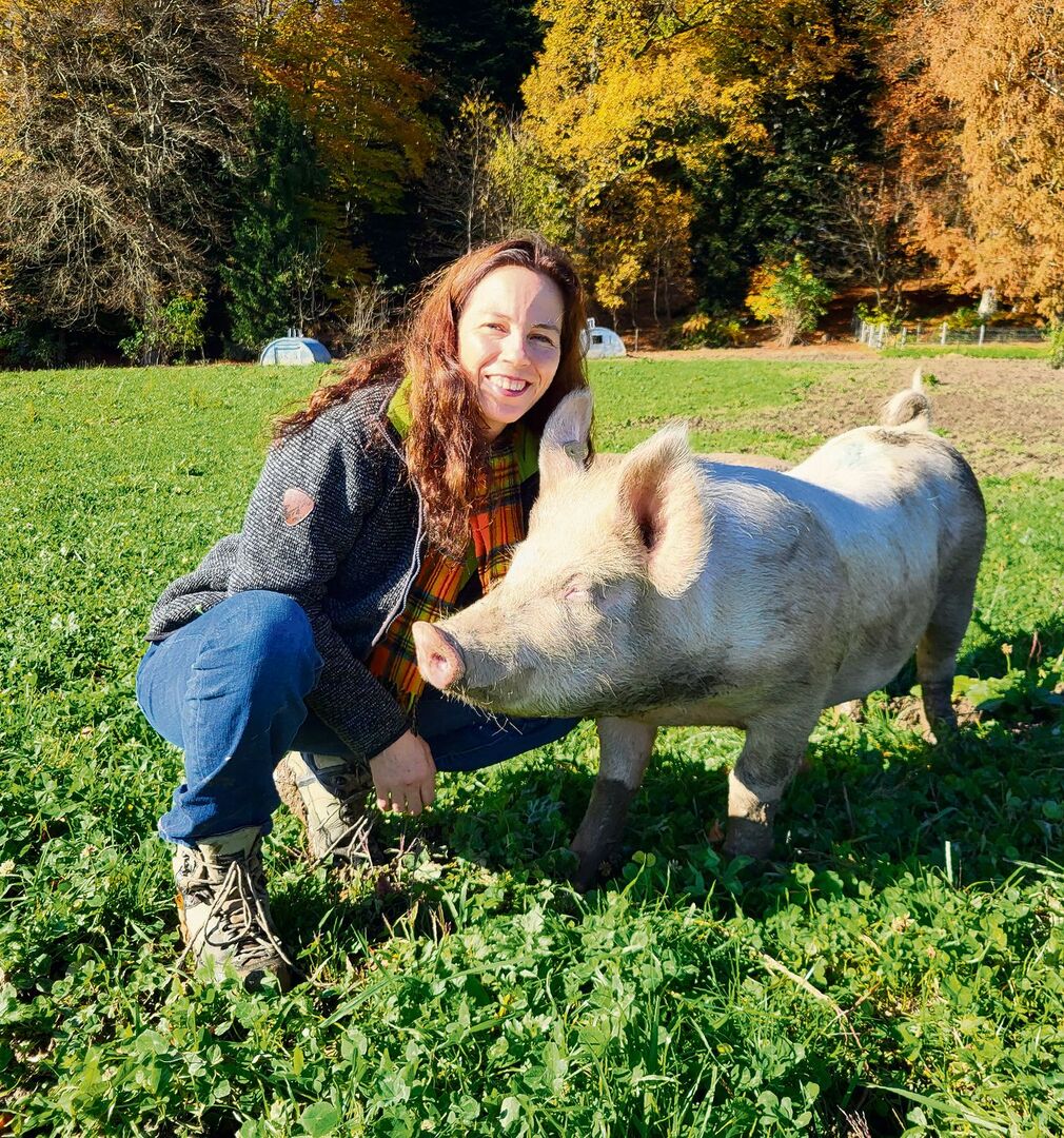 Doch es gibt Betriebe, die versuchen, Schweinehaltung neu zu denken und dabei voll aufs Tierwohl setzen. In der biologischen Schweinezucht stellt jedoch das teure Futter einen grossen Knackpunkt dar. Küchler sieht hier unter anderem Potenzial in einem Agroforst-System. «Bäume sind genial für Schweine», findet sie. Nebst Schatten bieten sie mit Eicheln und Co. traditionelles Schweinefutter, das die Paarhufer gerne vertilgen. Von den 200 Hochstammobstbäumen des Panoramahofs hat Ursula Küchler den Schweinen viele Äpfel und immer wieder Baumnüsse geben können. Und es existieren noch weitere Möglichkeiten: «Ich kenne einen Landwirt, der füttert seine Schweine mit Bio-Gemüse, das aussortiert wird, weil es nicht der Norm entspricht», so Küchler. «Damit senkt er die Futterkosten und minimiert auch noch Food Waste.»