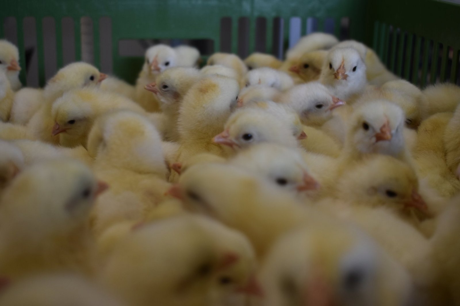 Die Küken schlüpfen schliesslich am 21. Tag. Auch an diesem Donnerstag ist ein «Schlupftag»: 21'000 Küken, wenige Stunden alt, piepen im Nebenraum. Wegen der Fehlerquote aus der Geschlechtsbestimmung sortiert das Brüterei-Team die Küken nach dem Schlupf von Hand nach deren Geschlecht.
