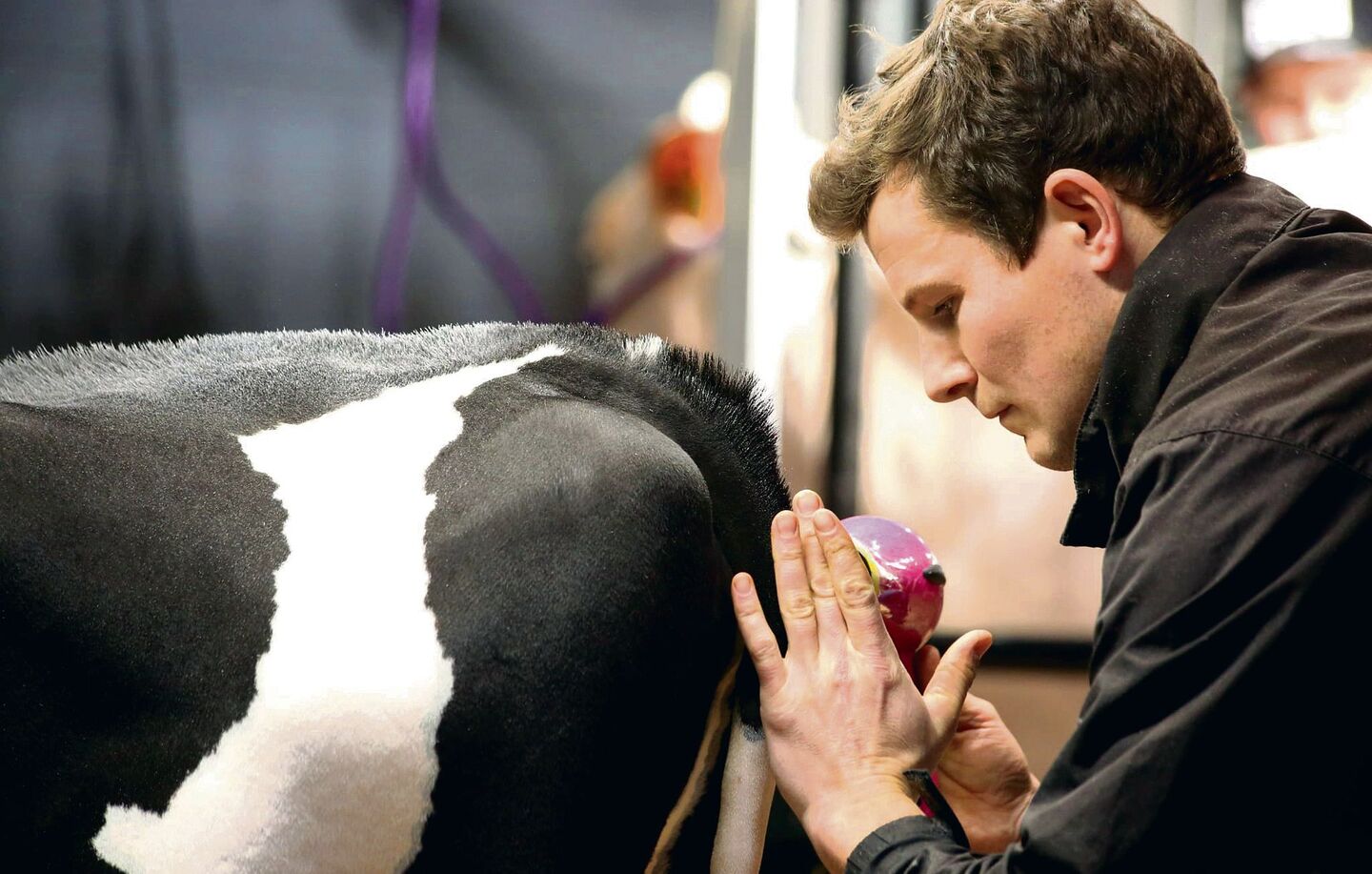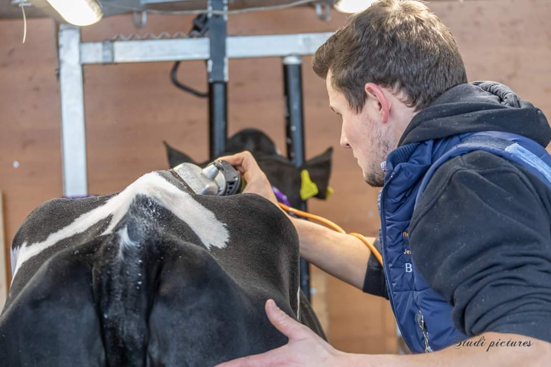 Das Ausstellungsfieber habe er von seinem Vater in die Wiege gelegt bekommen, mit dem er heute den landwirtschaftlichen Betrieb mit rund 30 Milchkühen und 40 Hektaren Land führt, so Fankhauser. 2015 begann er sich mit dem Kuhstyling auseinanderzusetzen. «Erst habe ich nur die Tiere aus dem eigenen Stall für die Shows zurechtgemacht, dann kamen immer mehr Anfragen von anderen Landwirten.» Anfangs gehörten nur Holstein-Kühe zu Fankhausers Kundinnen, doch schon bald verschönerte er auch Brown Swiss und manchmal Jersey-Kühe. Nachdem er 2017 an der europäischen Jungzüchterschule im belgischen Ort Battice den Sieg in der Einzelwertung geholt hatte, sind seine Stylingkünste sogar auf dem internationalen Parkett gefragt. «Vieles läuft auch über Mund-zu-Mund-Propaganda, mittlerweile werde ich als Kuhfitter für Shows in Italien, Frankreich, Belgien oder Spanien engagiert», erzählt der Jungzüchter nicht ohne Stolz. Michael Fankhauser ist ein gefragter Mann, so gut wie er können nicht allzu viele mit der Schermaschine umgehen. Und ausserdem sind die Leute in der Schweiz rar, die ihre Dienste als sogenannter Kuhfitter anbieten. «Das Ziel des Stylings ist, die funktionalen Merkmale einer leistungsstarken und langlebigen Kuh herauszuarbeiten und den eleganten Ausdruck eines Tieres zum Vorschein zu bringen», erklärt der junge Landwirt seinen Nebenjob. Positive Merkmale können so betont, wirkliche Mängel und Fehler im Gebäude aber nicht vertuscht werden.