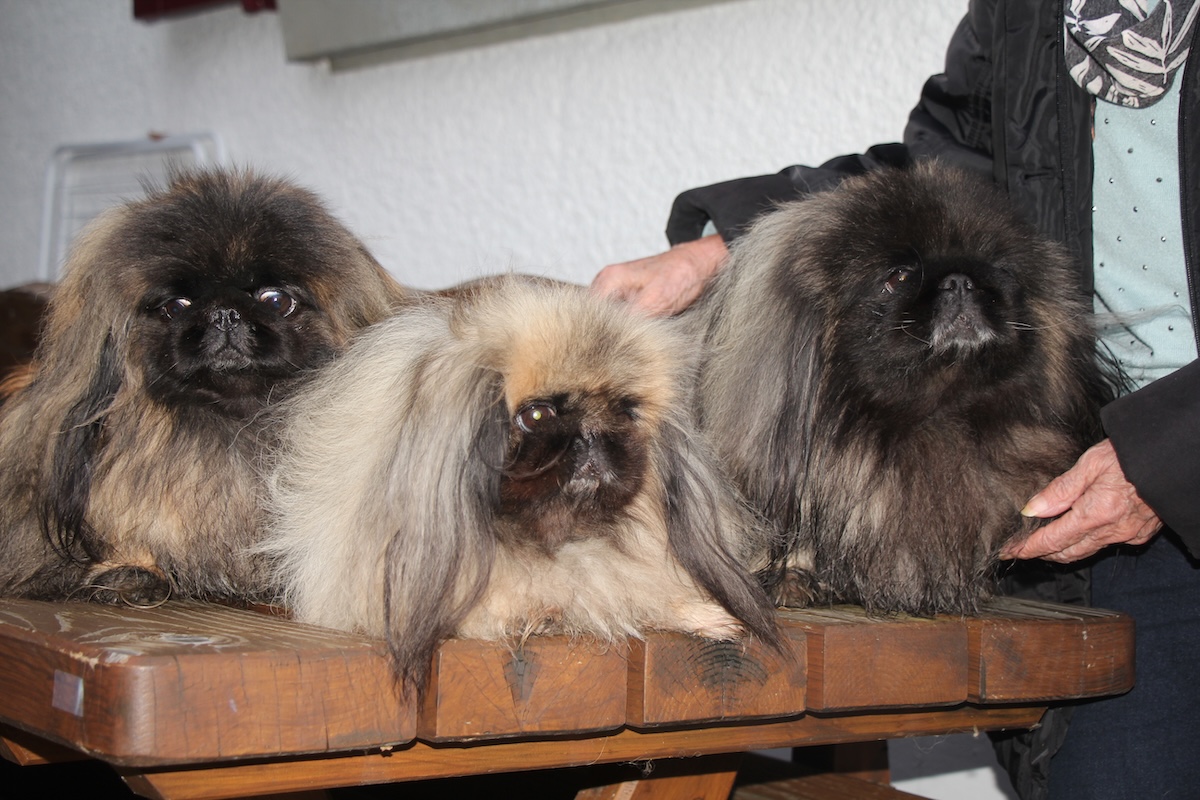 Ein weiteres Zentrum der Hundezucht entwickelte sich in Asien, ebenfalls im Rahmen kaiserlicher Paläste. Lange bevor in Europa die systematische Hundezucht bekannt war, wurden in Peking genaue Anweisungen gegeben, wie Hunde zu füttern seien. Dabei handelte es sich um die Löwenhunde oder Pekinesen. So wie Odette, Eiko und Essy, die drei Pekinesen von InesRiesen. «Schöne Pekinesen kommen heute aus England», sagt die Spezialistin für die Kleinhunde, die aussehen wie junge Löwen und führt damit auf die Fährte der Pekinesen.
