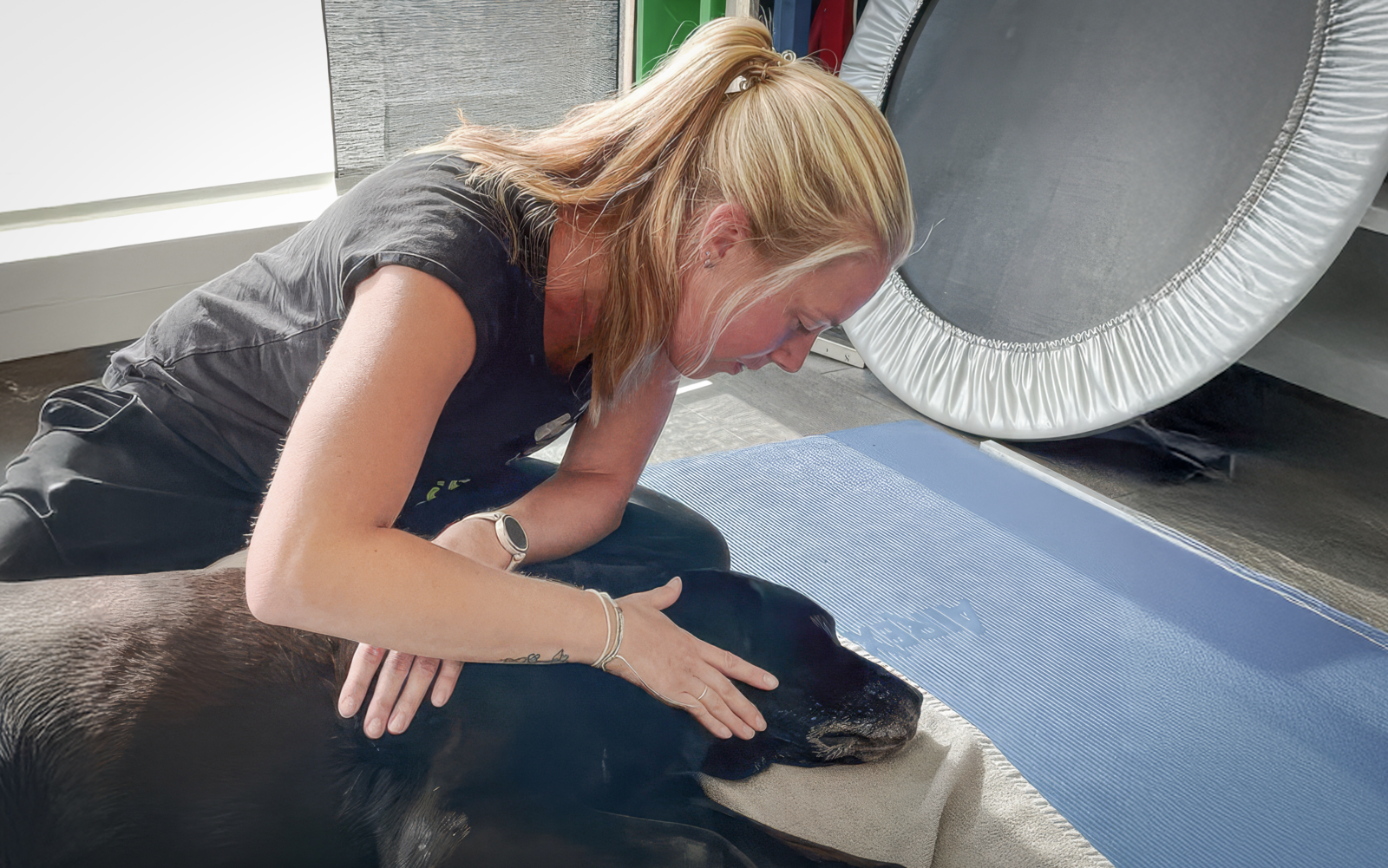 Thiaro ist tief ins Traumland abgetaucht, grummelnde Schnarchlaute verraten es. «Bei jeder Behandlung döst Thiaro unmittelbar nach Beginn weg», verrät Tamara Nideröst. Es sind ihre sanften und wirkungsvollen Massagegriffe, die den 13-jährigen Labradorrüden entspannen. Besitzerin Isabelle kommt mit ihrem Hund aber nicht nur zur Wellness seit einem halben Jahr regelmässig in die Rehabilitations- und Trainingspraxis Dog Fitness nach Rothenburg (LU). Der ältere Hundeherr leidet an Arthrose und hat muskuläre Probleme, auf die er mit Durchfall reagierte. «Lange musste ich Thiaro täglich Schmerzmittel verabreichen. Die physio- und osteopathische Behandlungen verschaffen ihm so gute Linderung, dass ich kaum mehr in die Tablettendose greifen muss», erzählt die glückliche Hundehalterin.
