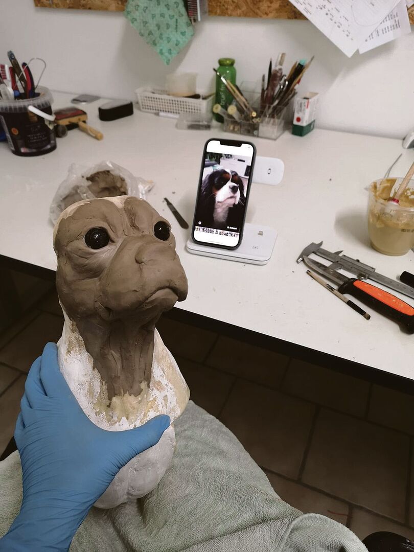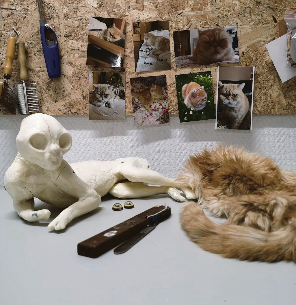 Während ihre Kunden Zeit haben, das Loslassen zu exerzieren, geht es bei Laura Eberhard ans Eingemachte. Für das Präparat wird nur das Fell des Tieres rezykliert. Tiere mit langem Fell sind wesentlich einfacher zu präparieren als kurzhaarige, wo Muskeln, Sehnen und Postur sich deutlich abzeichnen. Der Körper wird mit Polyurethanschaum nachgeformt, kremiert und dann in Form von Asche wieder ins Präparat gesetzt. Besondere Aufmerksamkeit kommt dem Gesicht zu, das anhand des Bildmaterials nachmodelliert wird; jeder Millimeter, jedes Detail ist hier entscheidend. Nach dem Anbringen und der Fixierung der Haut wird das Tier schliesslich koloriert.