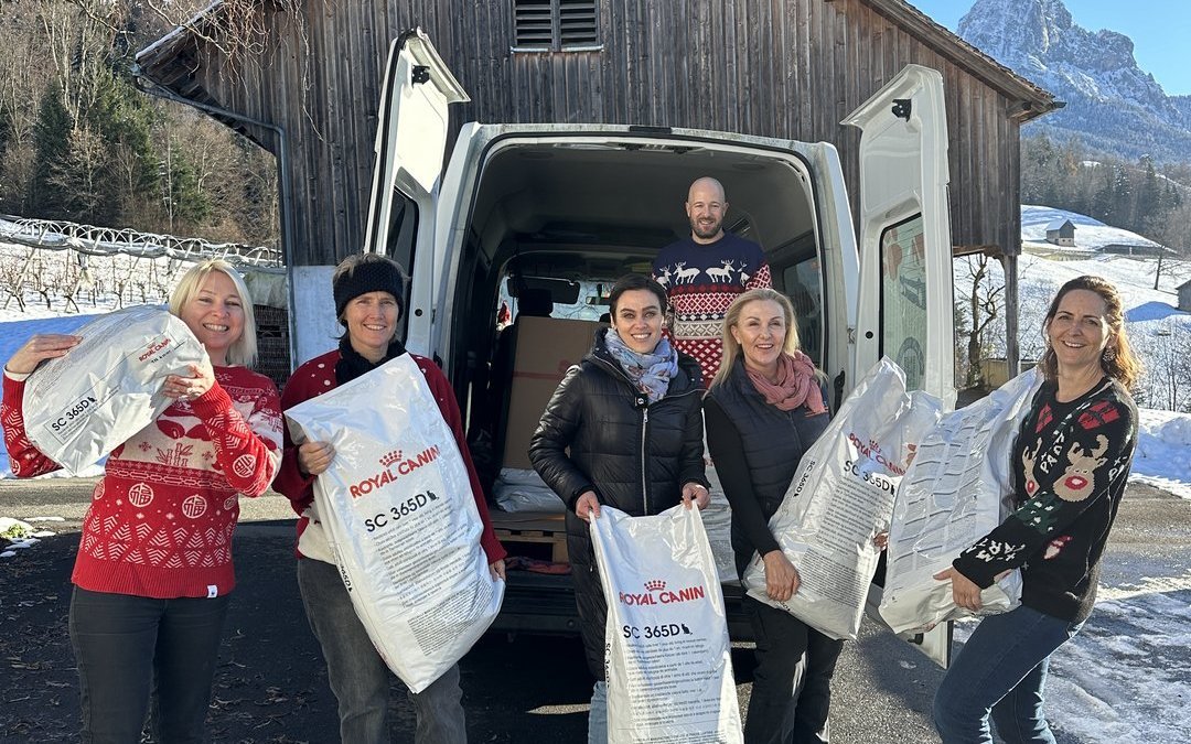 Weihnachtstruck der Susy Utzinger Stiftung: Nina Burri überbringt dem Tierheim Burg (SZ) Futter