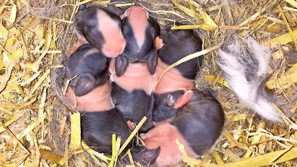 Ideal ist es, wenn die gebärende Mutter mit Haarerupfen beginnt und dann die Geburt ohne Verzögerungen durchzieht. Sind die Jungen im Nest, werden sie gleich mit der wichtigen ersten Kolostral-Milch von der Mutter gesäugt. Innerhalb der nächsten zwei Tage sollte der Züchter eine Nestkontrolle durchführen. Es gilt zu schauen, ob die Jungtiere volle Bäuchlein haben und somit gut genährt sind. Zudem sollte auch kontrolliert werden, ob alle Kleinen noch leben, trocken, warm und gut zugedeckt sind.