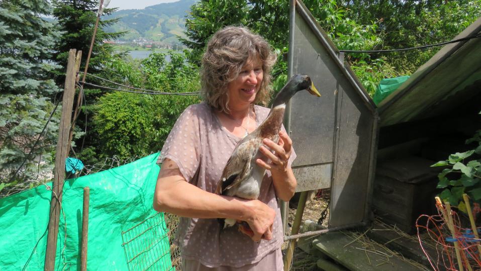 Pia Oechslin aus Lauerz SZ züchtet seit zwanzig Jahren Laufenten – und dies so ökologisch wie möglich. Die Tiere, die gerade nicht brüten sollen, gibt sie in die Vermietung.