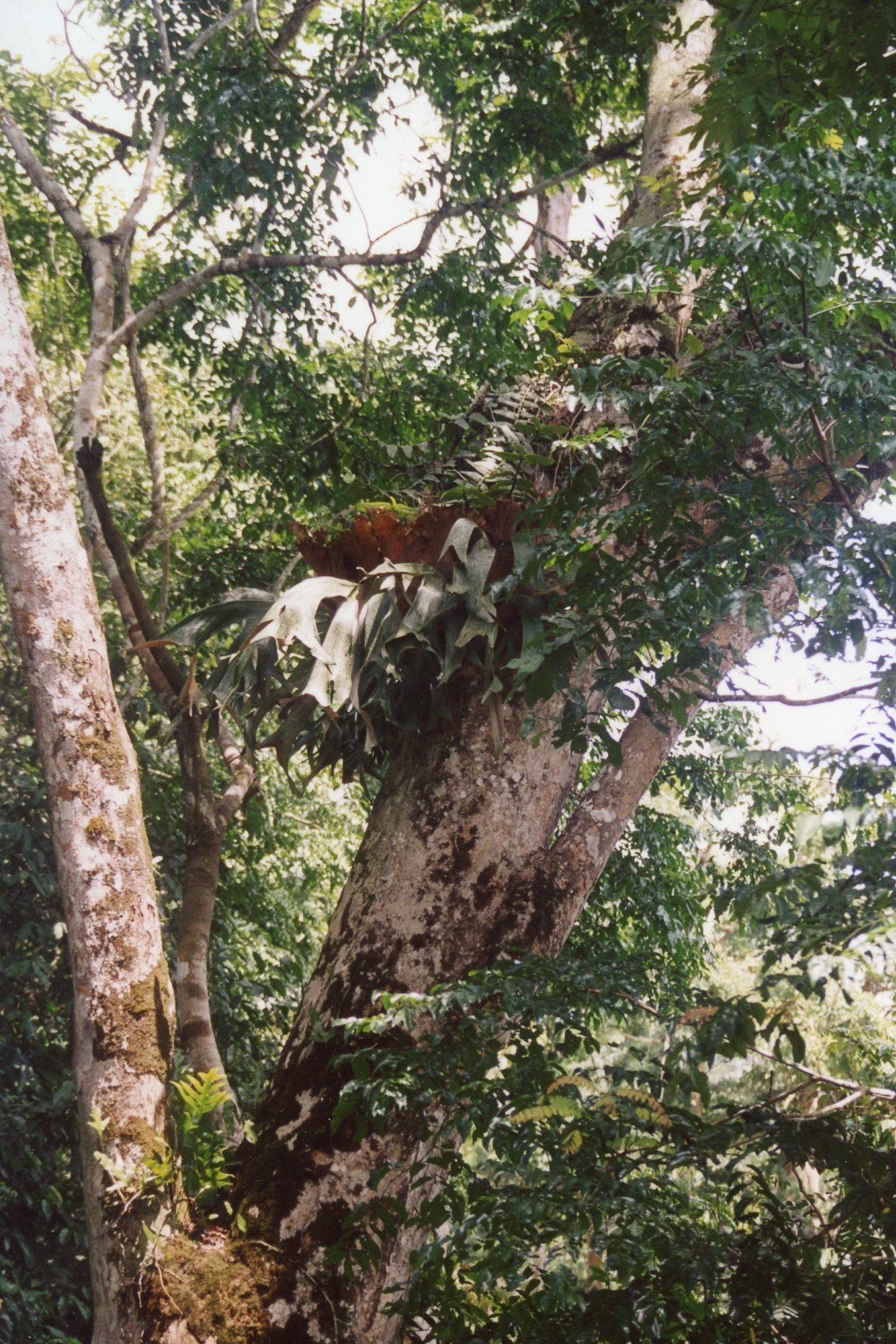 Dass Geweihfarne, als adrette Topfpflanzen erworben, auch in Privathand so gross werden, ist gar nicht unwahrscheinlich. Bedingung ist, dass sie in ein Gefäss gesetzt werden, das aufgehängt werden kann. Mit den Jahren wird das Gefäss von Blättern umwachsen, bis es nicht mehr zu sehen ist.
