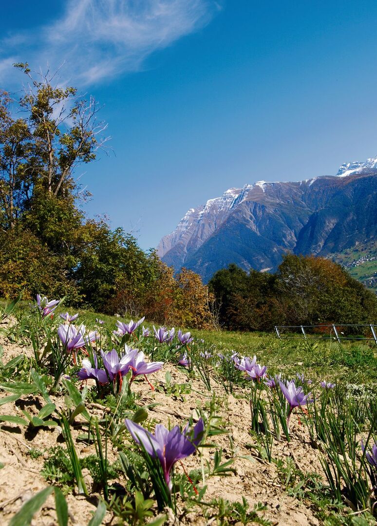 In Mund blüht im Oktober und November eine besondere Krokusart. Auf den kleinen Äckern hoch über dem Rhonetal wird seit dem 14. Jahrhundert Safran geerntet. Heute kümmert sich die Safranzunft um das rote Gold des Wallis.