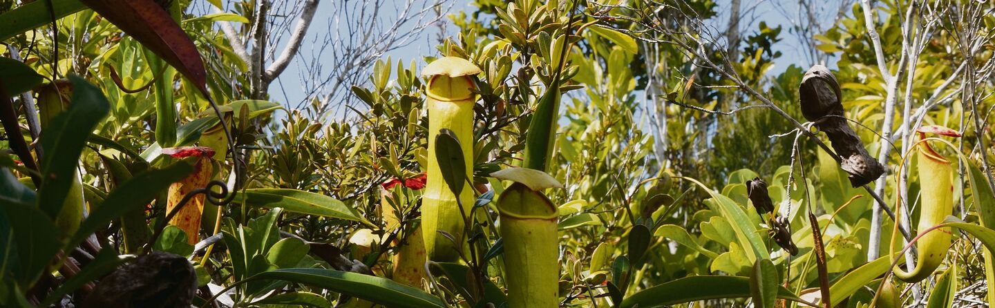 Rundherum gedeiht tropischer Regenwald, doch durch die Höhe der Tafelberge und die exponierte Lage herrscht dort oben ein anderes, kühleres Klima. Heftige Gewitterregen gehen oft mehrmals täglich über die Tepuis nieder und schwemmen das kärgliche Substrat weg. In diesen einzigartigen Lebensräumen haben sich endemische Tier- und Pflanzenarten entwickelt, wie gewisse fleischfressende Pflanzen wie die Sumpfkrüge. Wie sollen solche Pflanzen an einem solchextremen Standort zu Nährstoffen kommen? Sie locken Insekten an! Auch in Asien gedeihen viele Kannenpflanzenarten auf tafelartigen Bergen.