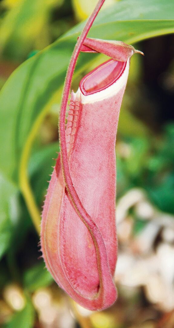 Urs Zimmermann hat auf einer Expedition gar eine bisher noch nicht bestimmte Art aufgespürt und sie zusammen mit Kollegen wissenschaftlich als Nepenthes undulatifolia beschrieben. Auch der Rundblättrige Sonnentau lebt in schwierigen Verhältnissen – nicht in den Tropen, sondern in der Schweiz. Er kommt in Moorgebieten vor und verankert sich dort mit seinen Wurzeln im sauren Boden. Für Nahrung muss auch er ander-weitig schauen. Mücken bleiben an den mit Ameisensäure durchsetzten Tropfen kleben, die auf den Fangblättern schillern, bis sich die gereizten Tentakel zur Blattmitte neigen, sodass sich das ganze Blatt einkrümmt. Durch diesen Vorgang kommen Verdauungsdrüsen in Kontakt mit der Beute. Die Verdauung dauert mehrere Tage. Nur der Chitinpanzer des Insekts zeugt am Schluss vom Drama.