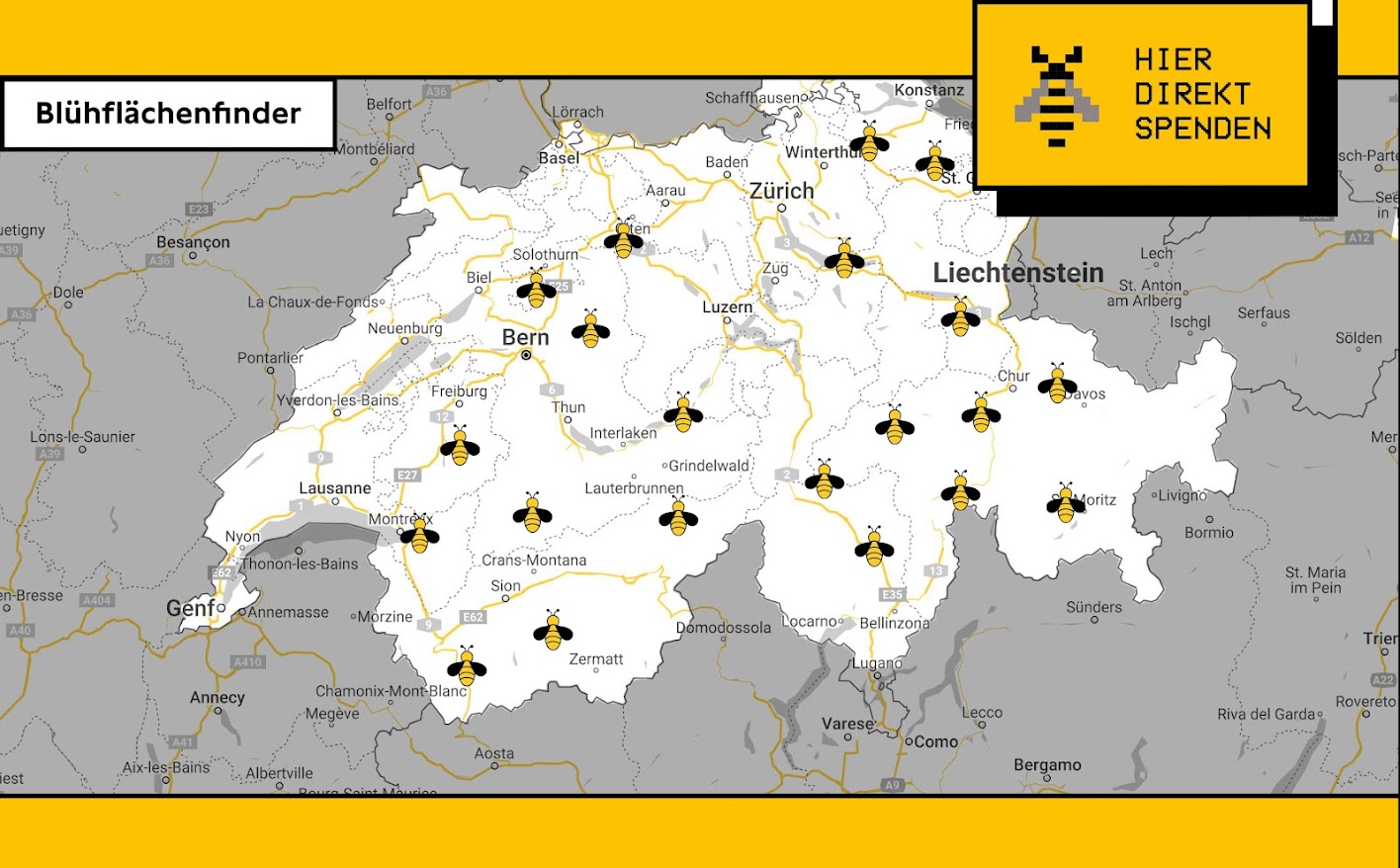 Pünktlich zum heutigen Weltbienentag, ging die erste von BienenSchweiz initiierte Immobilienplattform für Bienen live. Auf immobienen.ch stehen für interessierte Käuferinnen und Käufer rund 170 Blühflächen zur Verfügung, die mit einer Spende erworben werden können. Je nach Grösse variiert der Kaufpreis zwischen 30 und 150 Franken. Mit diesem Betrag decken die neuen Blühflächen-Besitzer die Kosten für das Anlegen der Blühfläche, der Beschaffung von geeignetem Saatgut und einer Beratung durch BienenSchweiz. Wer lieber mietet statt kauft, kann eine Fläche monatlich mieten. Die Miete dient dem Unterhalt der neuen Bienen-Lebensräume, denn dieser darf nicht ausser Acht gelassen werden. Aufgebaut ist die Website wie eine klassische Immobilienplattform, auf der ersichtlich ist, wo sich der Bienenlebensraum befindet, um wie viele Quadratmeter es sich handelt und welcher Ausbaustandard angeboten wird.