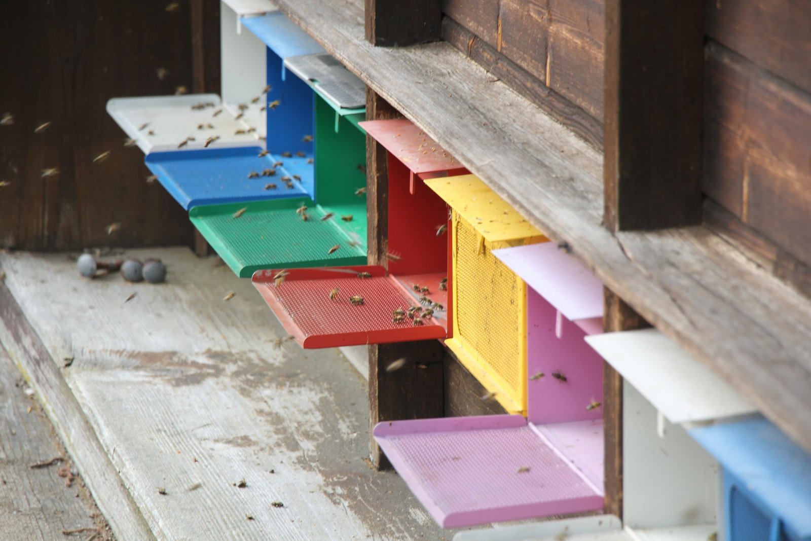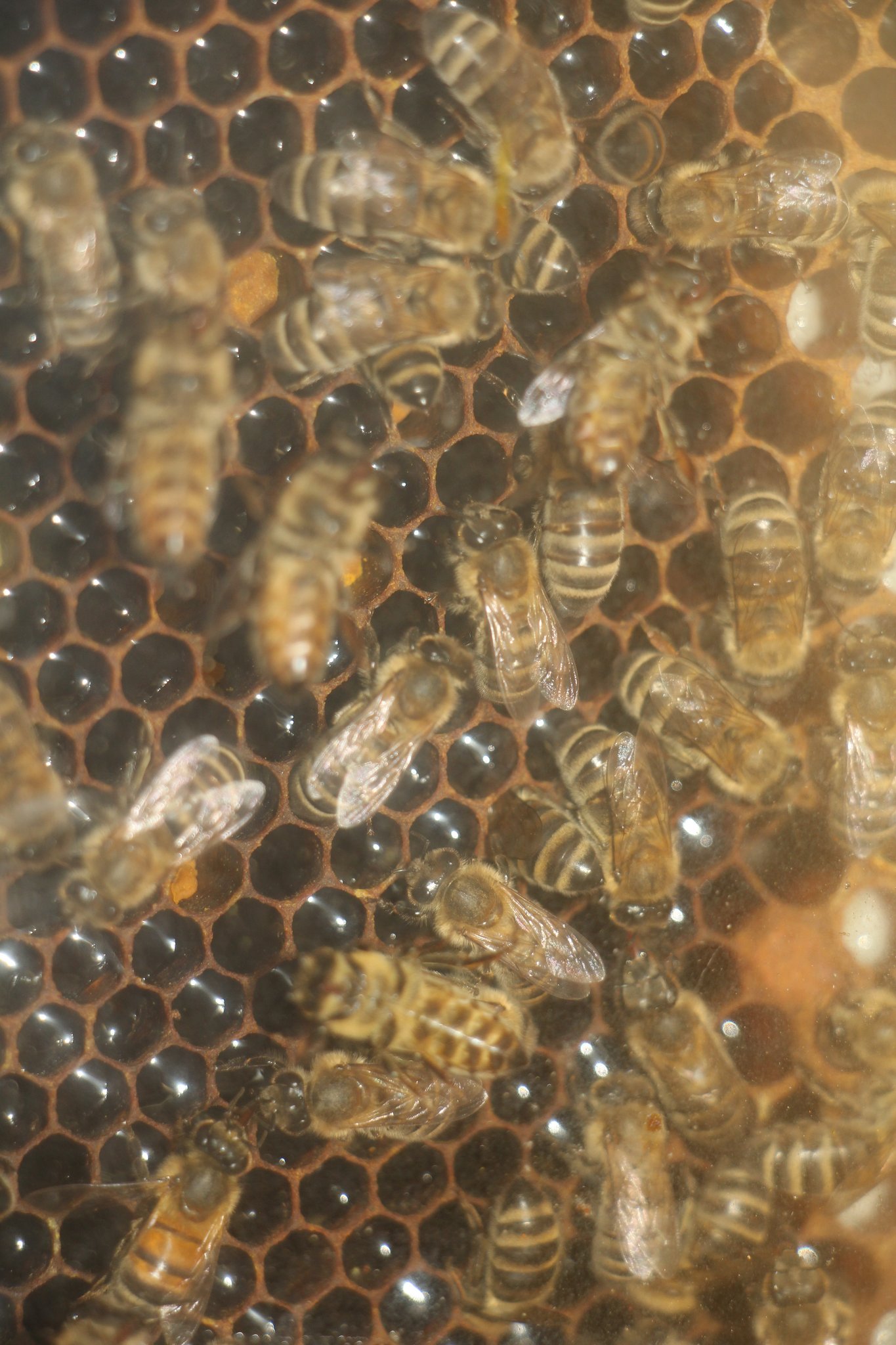Bienen lagern Nektar und Pollen mehrmals in ihren Waben um und verdeckeln sie schliesslich. Es handelt sich um Vorrat für den Winter. Der Imker erklärt: «Ich pflege meine Bienen in Schweizer Kästen.» Das sind schmale Holzkästen. Im Sommer werden in der oberen Hälfte dieser Kästen Honigwaben platziert. Er entnehme die oberen Waben, um Honig zu schleudern, die unteren belasse er bei den Bienen.