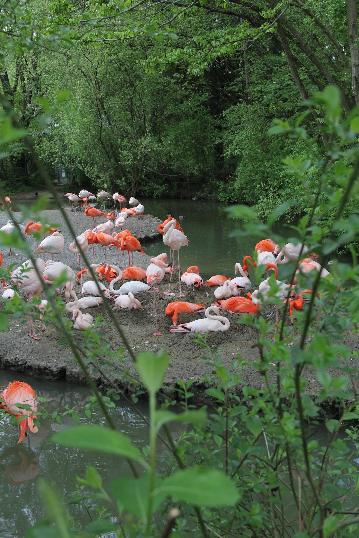 Wer sich nicht auf eine Zugfahrt durch die Camargue begeben möchte, reist nach Basel in den Zolli in die Schweizer Camargue. Gegen 130 Rosaflamingos schnattern in einer Weiherlandschaft zwischen dem Antilopen- und dem Etoschahaus. Der Zoo Basel ist weltweit bekannt für die Zucht von Flamingos. Im Jahr 1959 gelang nämlich dort die Welterstzucht des Rosaflamingos. Ein Jahr vorher schlüpften in Basel die ersten Chileflamingos in einem europäischen Zoo. Das war eine Sensation, denn damals war kaum etwas über das Leben der Vögel bekannt. Zum Erfolg führte, weil in Basel die Gruppe auf 44 Flamingos erhöht und ein Teil ihres Geheges künstlich überschwemmt wurde.