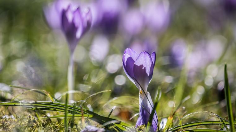 Krokus gehören zu den ersten Farbtupfern nach dem Winter und strecken ihre Blüten auch mal durch die letzte Schneeschicht der wärmenden Sonne entgegen. Es handelt sich dabei um Frühlings-Krokus (Crocus vernus), der dank seiner Zwiebeln im Frühling als eine der ersten Blumen austreibt. Mit Safran hat Crocus vernus aber nichts am Hut.