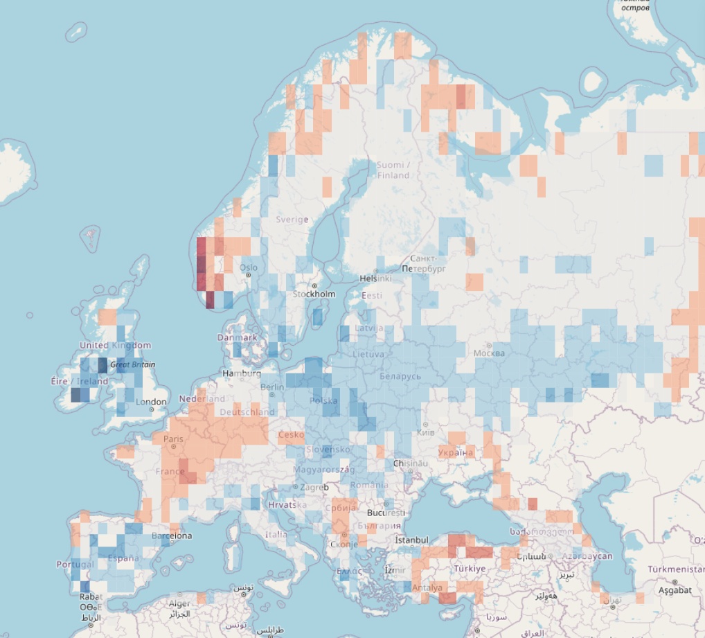Die Klimarisikokarten des Forschungsprojekt stellen die Gefährdung der Wälder durch verschiedene Faktoren dar. Zum Beispiel zeigt die Karte M21 den Verlust der Artenvielfalt. Die gesamten Wälder der Nordhalbkugel (in Europa, Amerika und Russland) und des Amazonasgebiets sind davon stark betroffen.