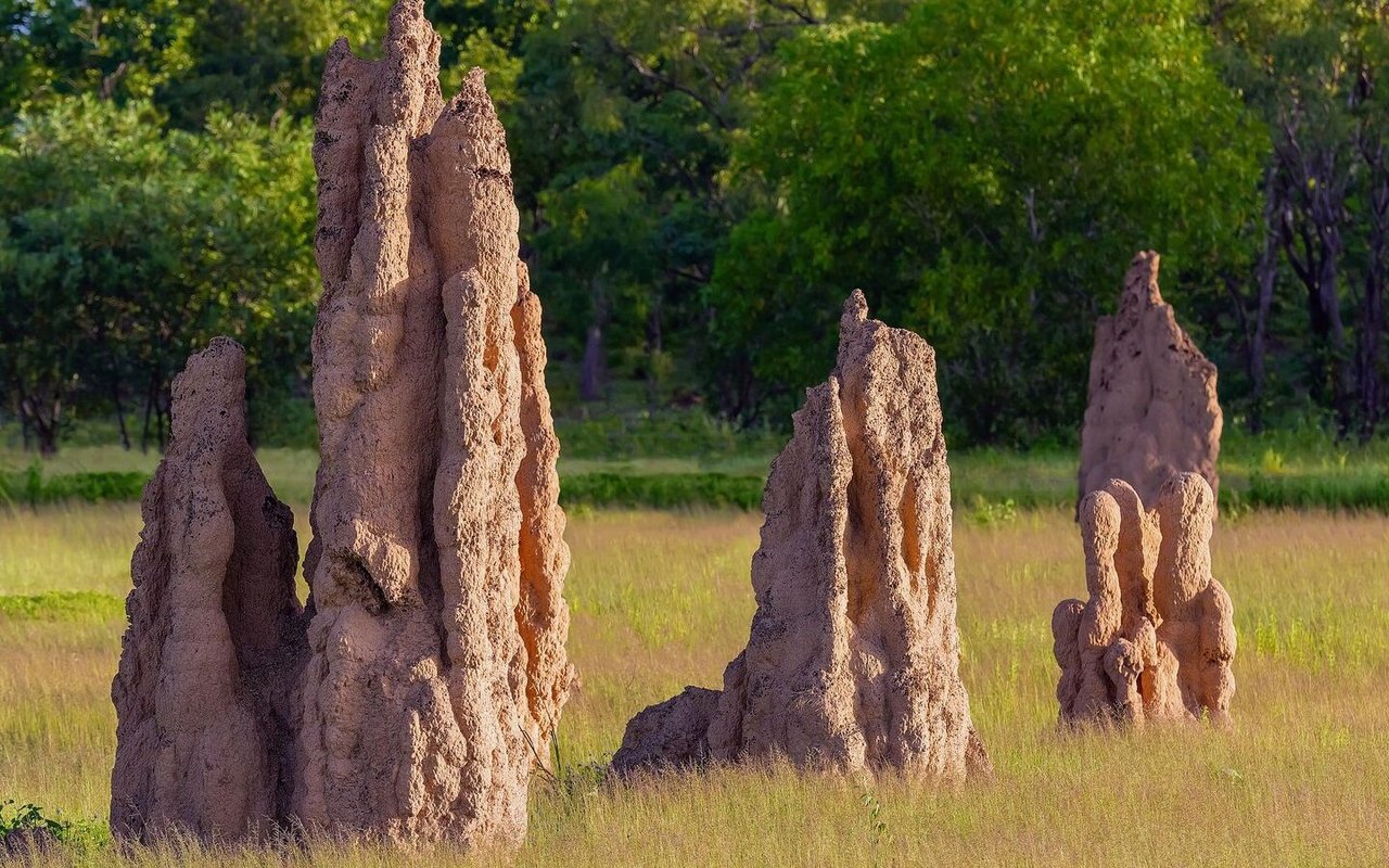 Die Hügel sind auch so hart, dass sie die kleinen Termiten vor potenziellen Fressfeinden schützen. Ganz nebenbei bieten die Termitenhügel auch anderen Insekten wie Kurzflüglern, Blatthornkäfern, Zweiflüglern und Fischchen (Zygentoma) Unterschlupf. So profitieren nicht nur die Erbauer von den architektonischen Meisterleistungen im Tierreich, sondern oft auch zahlreiche Nutzniesser mit weniger Konstruktionstalent.