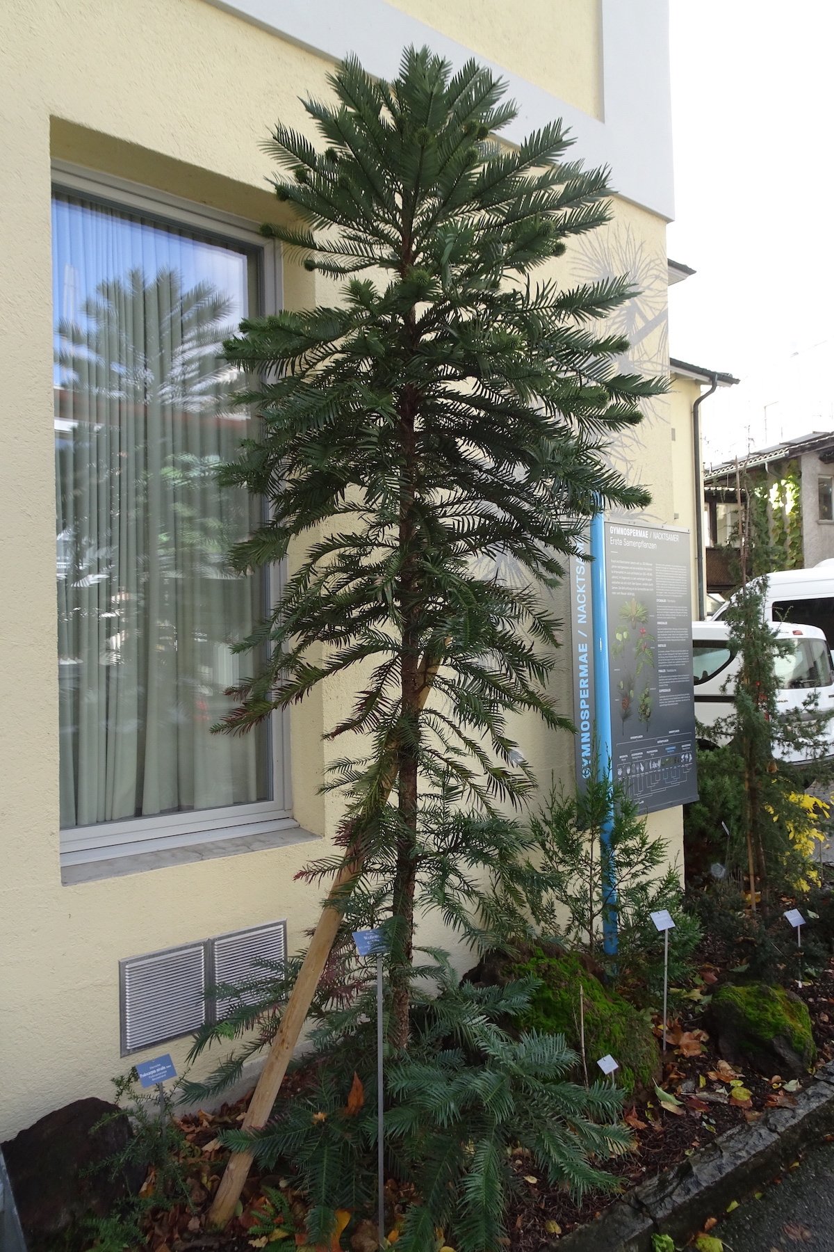 Auch die Wollemie ist eine Pflanze aus einer anderen Zeit. Sie sei erst 1994 in einem abgelegenen australischen Tal in den Blue Mountains entdeckt worden, sagt Katja Rembold vor einem stattlichen Baum dieser Art, der an einer Aussenmauer eines Gebäudes im Botanischen Garten Bern wächst. Sie verrät mit einem Lächeln: «Er gedeiht hier ganzjährig draussen, weil sich unter ihm ein Lüftungsschacht befindet.» So werde der Baum auch während der kalten Jahreszeit mit warmer Luft versorgt. Die Wollemie ist ein Nacktsamer. Männliche und weibliche Zapfen bilden sich am gleichen Baum.