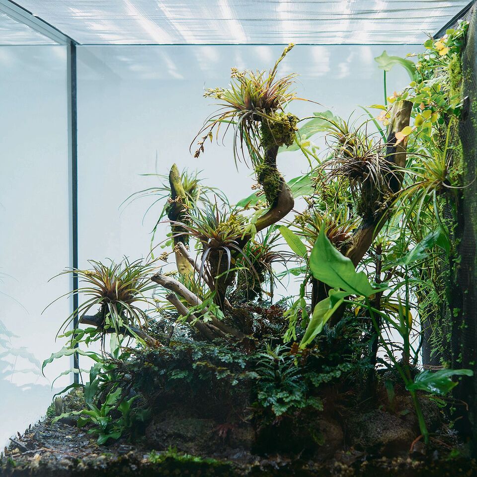 Gegenwärtig würde in der Schweiz punkto Pflanzen sehr viel passieren, Social Media sei Treiber davon. Zudem schätzen es Terrarianer besonders, dass im Farnwerk hauptsächlich Wildformen gezogen werden. Einesteils möchten Reptilien- und Amphibienliebhaber Pflanzen, die aus den Herkunftsgebieten ihrer Tiere stammen, andererseits sind sie auf klein bleibende Gewächse aus. Im Schautreibhaus ihrer Gärtnerei befindet sich ein beispielhaft eingerichtetes Terrarium voller natürlicherweise klein bleibender Bromelien, Farne und Orchideen. Privat halten die beiden Experten Pfeilgiftfrösche in grossen, spektakulär bepflanzten Terrarien.