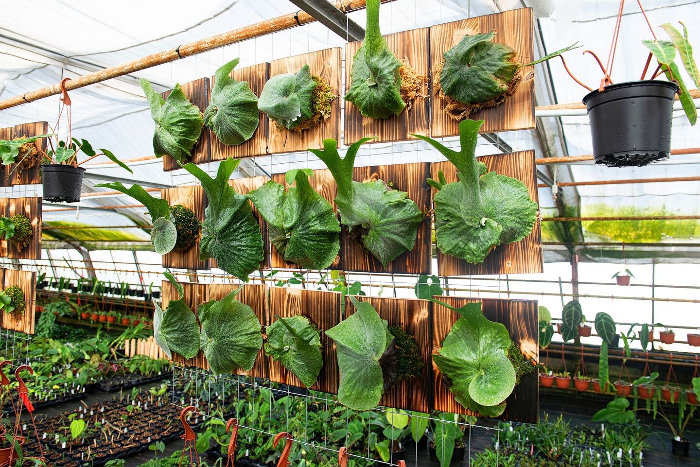 Ob herzförmige, samtene Riesenblätter mit attraktiven Musterungen oder getigerte Klein-Bromelien – im Farnwerk in Härkingen SO werden besondere tropische Pflanzen gezüchtet – für das Wohnzimmer und das Terrarium.