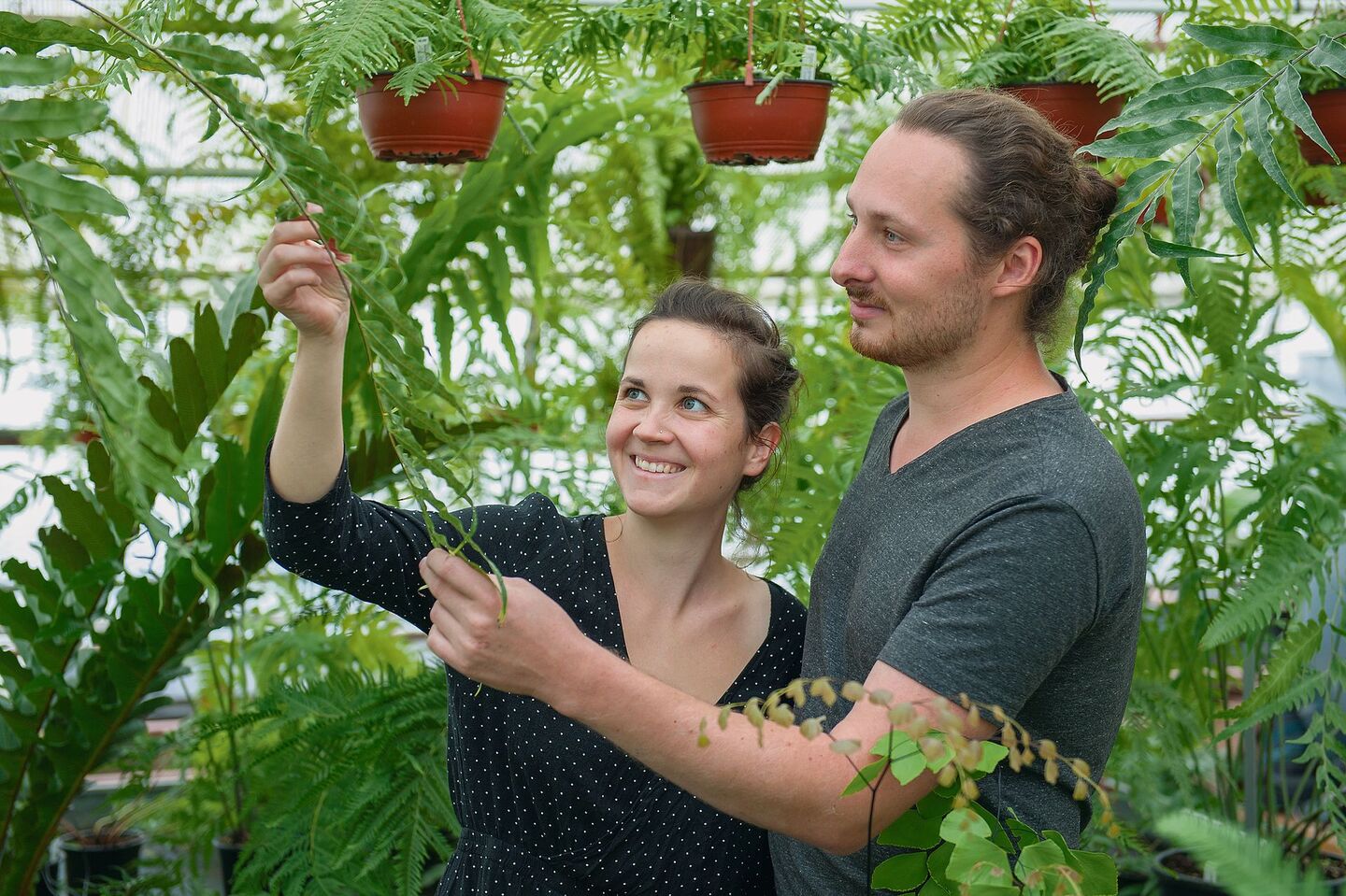 Geweihfarne sind nicht nur beliebte Terrarienpflanzen, sondern auch Hingucker in der Wohnung. «In Japan herrscht derzeit ein richtiger Trend für Geweihfarne», streichen Michael und Maria Schneider heraus. Sie sind überzeugt, dass er auch in die Schweiz überschwappen werde. Sie hätten vor allem viele junge Kunden, die sich über das Internet informierten und auf Einträge von Influencern zu besonderen Pflanzen reagierten. «Pflanzen sind die neuen Haustiere», ist Michael Schneider überzeugt. Er bewegt sich wie ein Waldbewohner zwischen tellerrunden und lanzenförmigen Blättern. Michael Schneider und seine Partnerin haben Industriedesign studiert. Anschliessend habe er eine Lehre als Zierpflanzengärtner absolviert. Mit ihrem Farnwerk begannen die beiden Pflanzensammler 2017. Maria Schneider sagt: «Wir wollten gerne mit Pflanzen etwas machen. Die schlechte Verfügbarkeit vieler Arten führte dazu, dass wir sie selbst vermehren.»